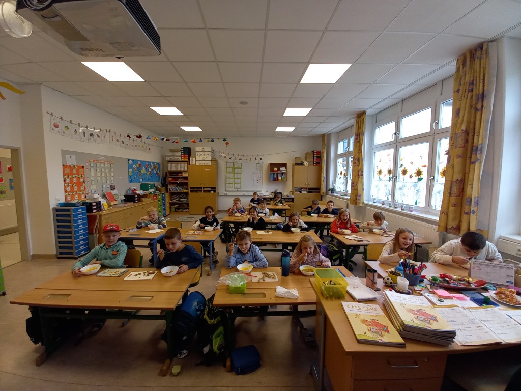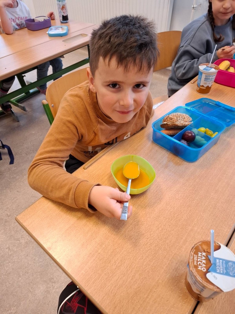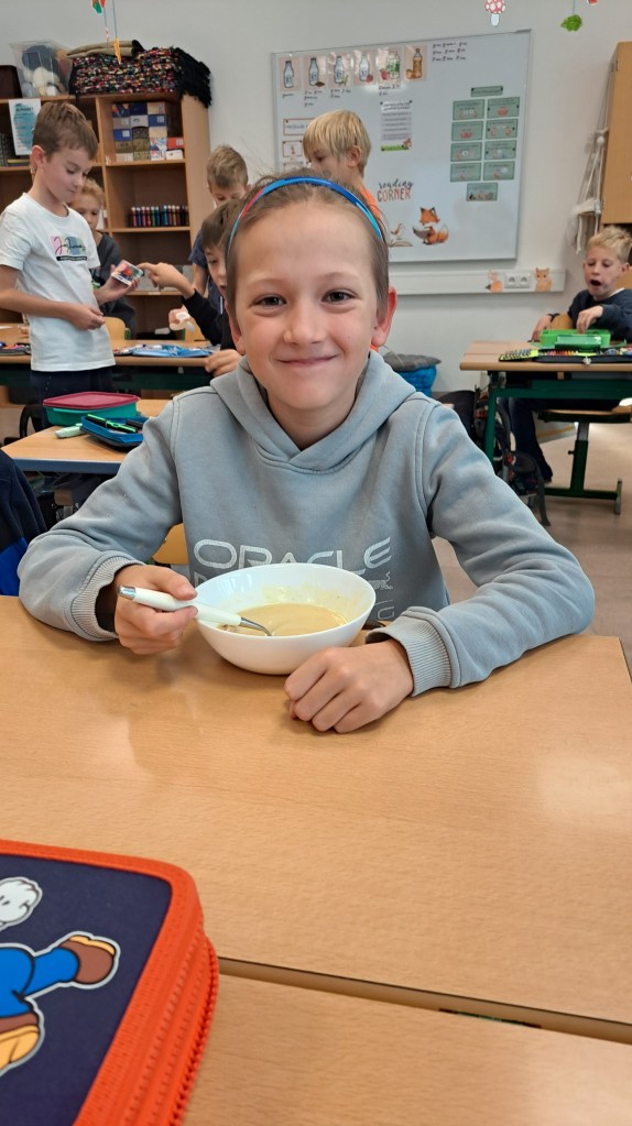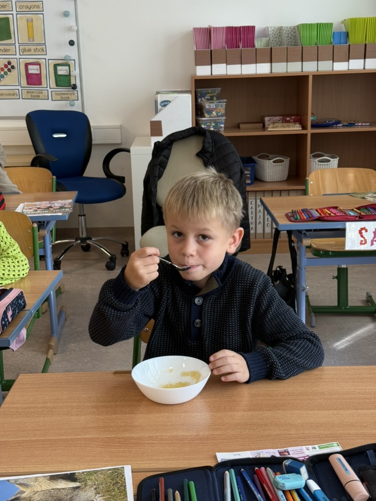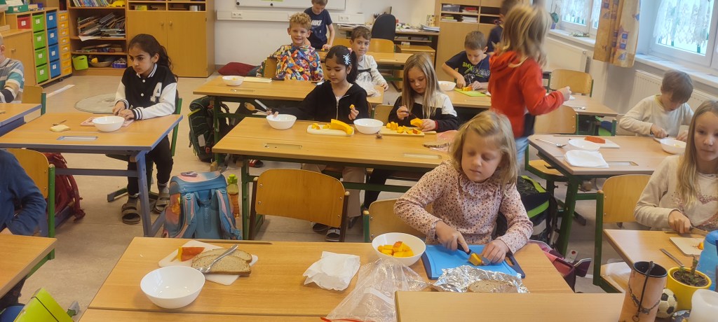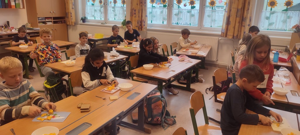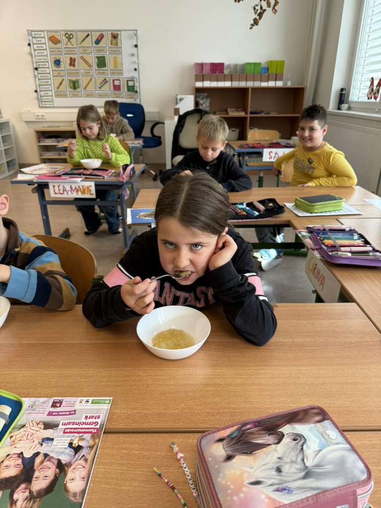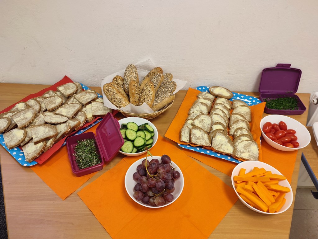 Am 16. Oktober 2024 dem „Tag des Brotes“ gab es die erste gesunde Jause diesesSchuljahres für die Kinder der 4b Klasse, die sichtlich schmeckte.