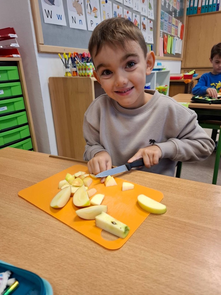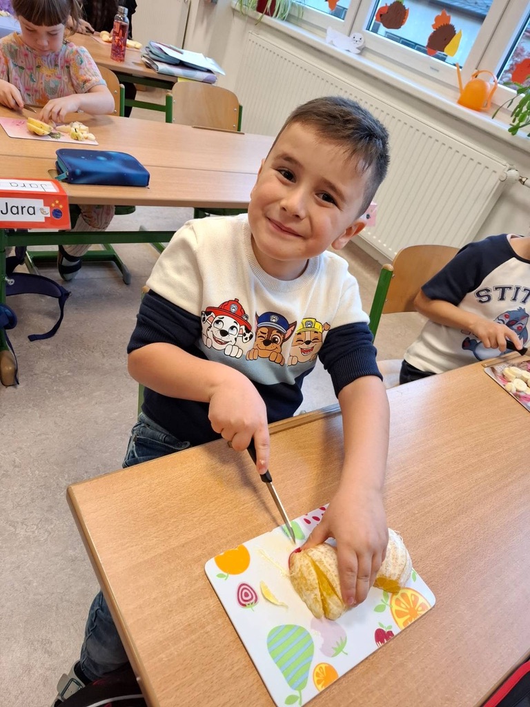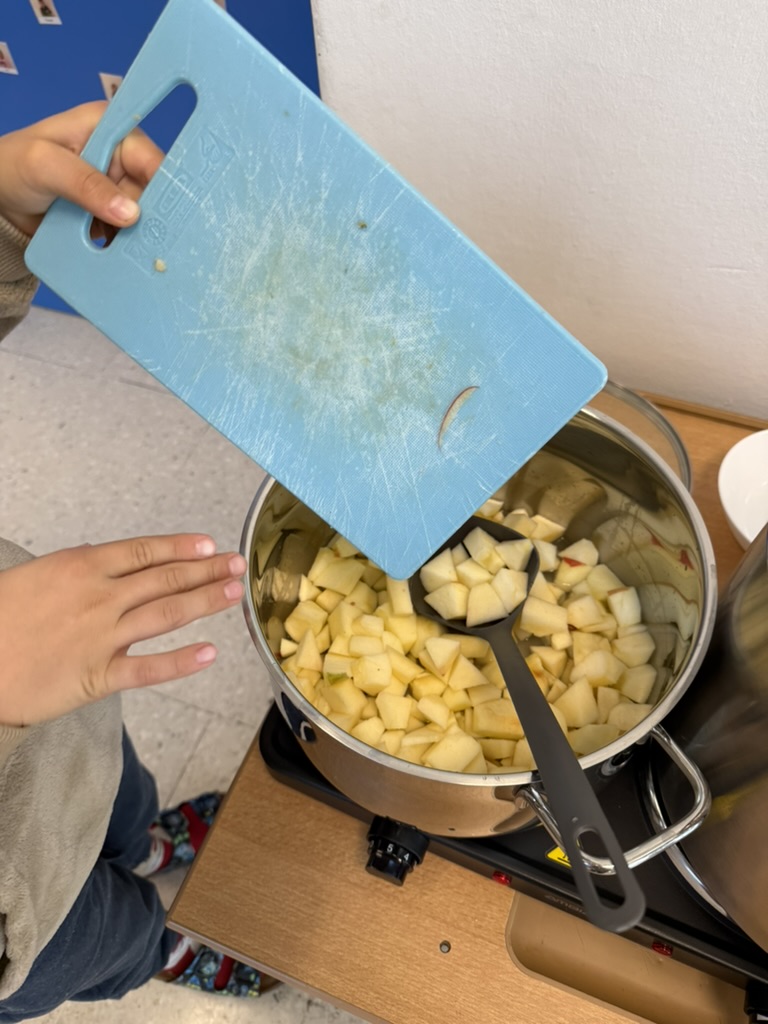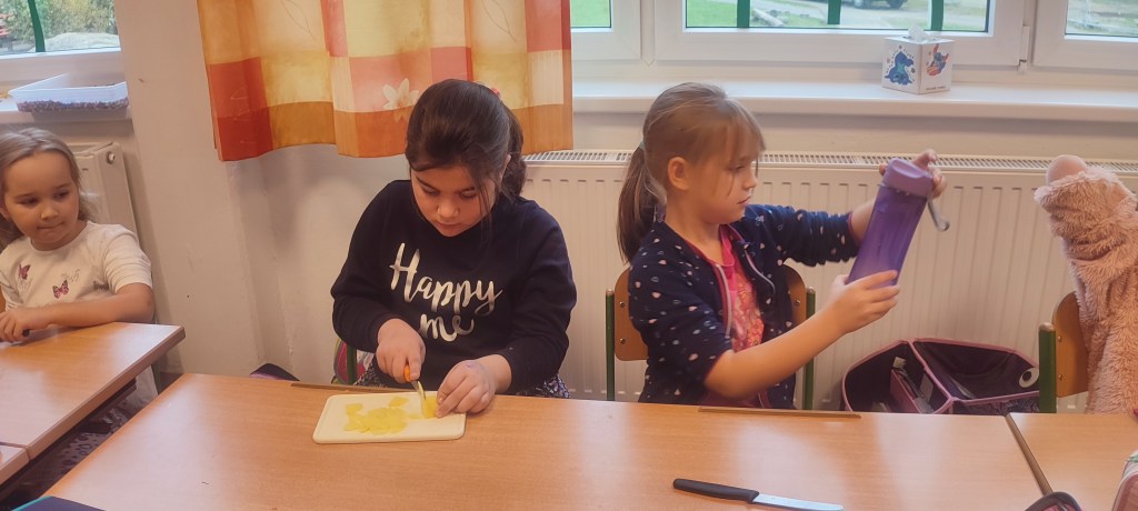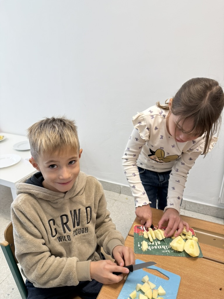 Im Sachunterricht haben die 2. Klassen ein spannendes Apfelprojekt durchgeführt. Gemeinsam erforschten wir den Aufbau des Apfels und lernten den Entstehungskreislauf vom Kern bis zur reifen Frucht kennen. Anschließend ging es zum Einkaufen, wo die Kinder verschiedene Apfelsorten auswählten und eigenständig kaufen durften. In der Schule wurden diese verkostet und miteinander verglichen. Zum krönenden Abschluss stellten die Klassen ihr eigenes Apfelmus her – ein leckeres und lehrreiches Erlebnis!