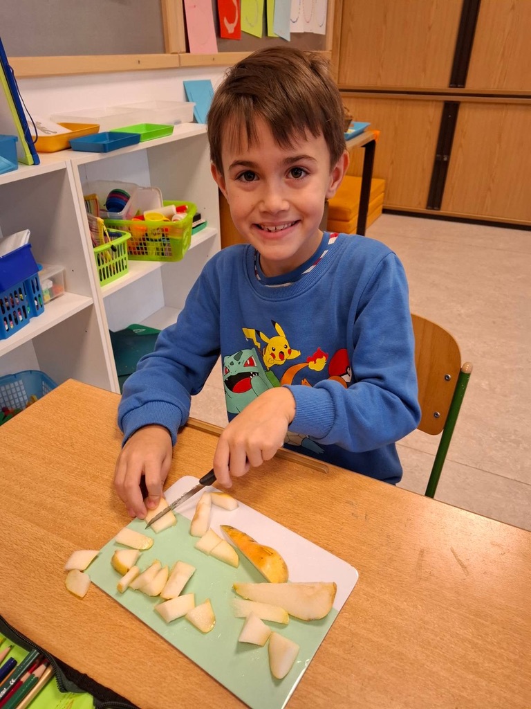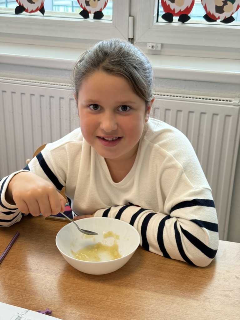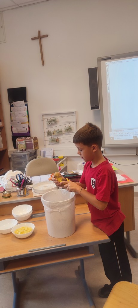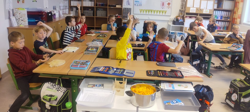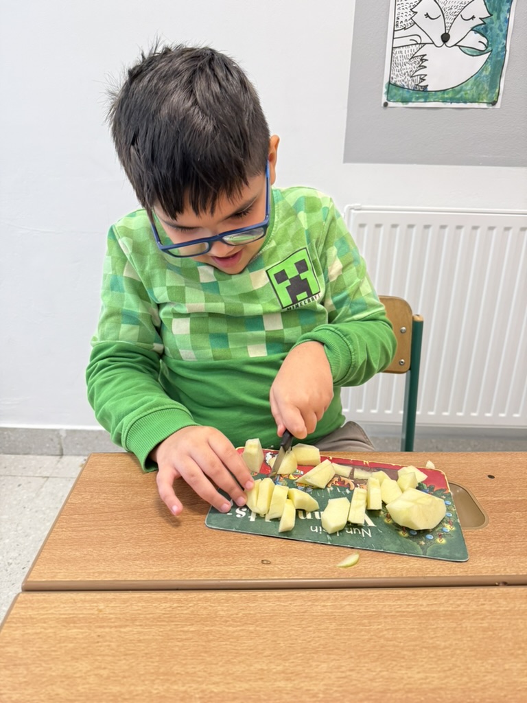 Im Sachunterricht haben die 2. Klassen ein spannendes Apfelprojekt durchgeführt. Gemeinsam erforschten wir den Aufbau des Apfels und lernten den Entstehungskreislauf vom Kern bis zur reifen Frucht kennen. Anschließend ging es zum Einkaufen, wo die Kinder verschiedene Apfelsorten auswählten und eigenständig kaufen durften. In der Schule wurden diese verkostet und miteinander verglichen. Zum krönenden Abschluss stellten die Klassen ihr eigenes Apfelmus her – ein leckeres und lehrreiches Erlebnis!
