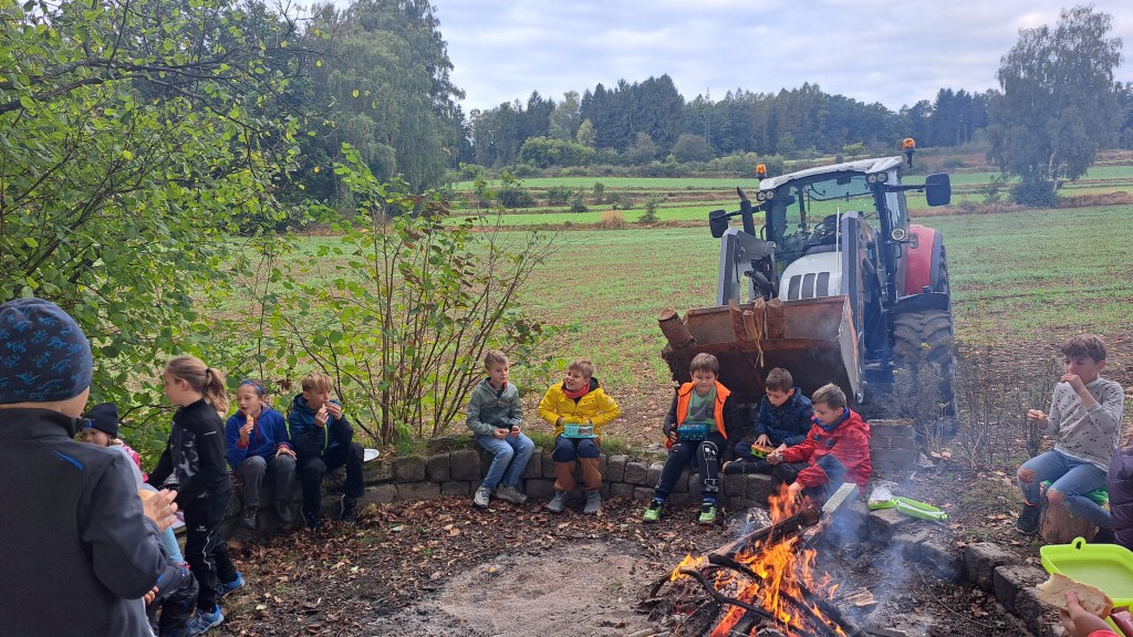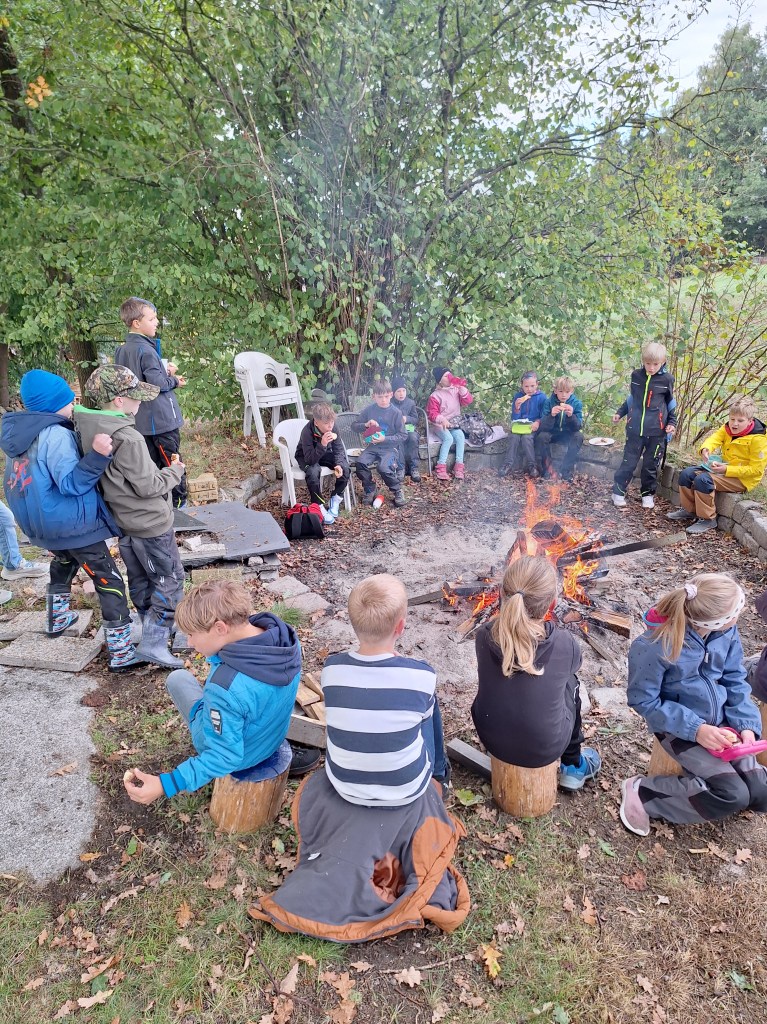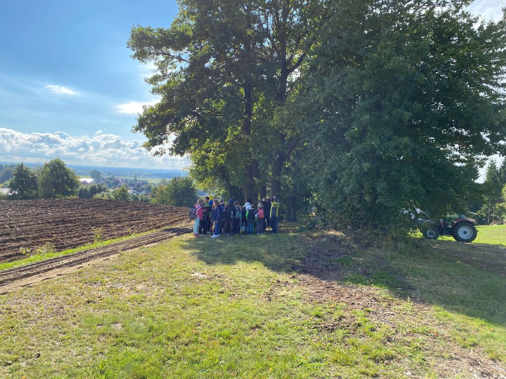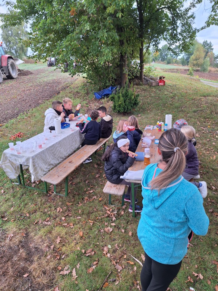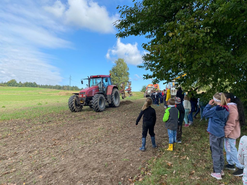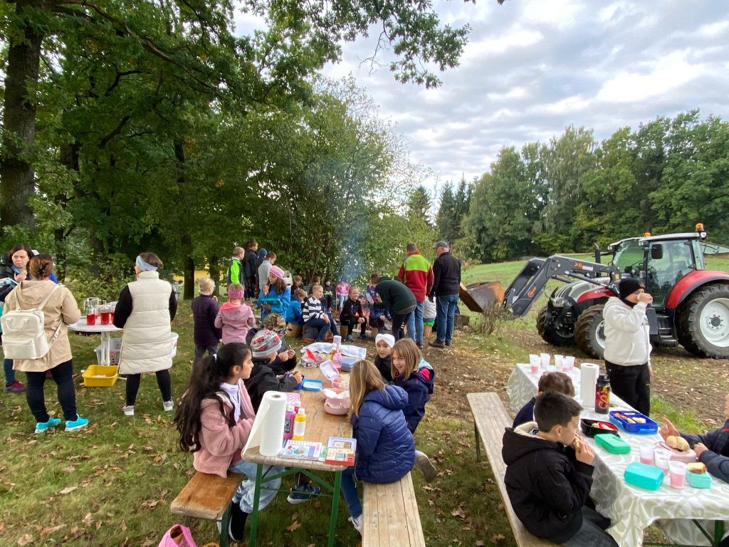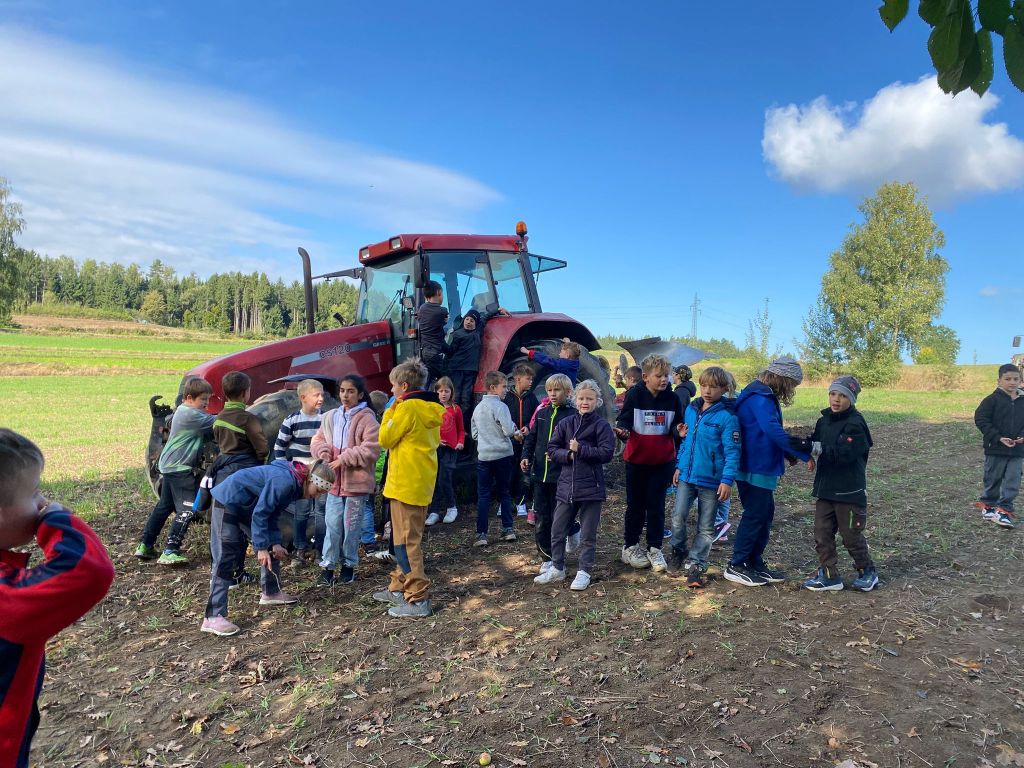 Wandertag nach Köttinghörmanns: Die Kinder der 3. Klassen durften bei Familie Brantner in Köttinghörmanns einen tollen Vormittag verbringen. Bei 4. Stationen konnten die Kinder wissenswertes zur Erdäpfel lernen, ein Klassensackerl mit Erdäpfelstempel bedrucken, Eräpfelerntemaschinen kennenlernen und auch Erdäpfel ernten dürfen. Zum Abschluss wurden die Erdäpfel in Folien gewickelt, im Lagerfeuer zubereitet und verspeist. Die Kinder waren begeistert und hatten jede Menge Spaß.