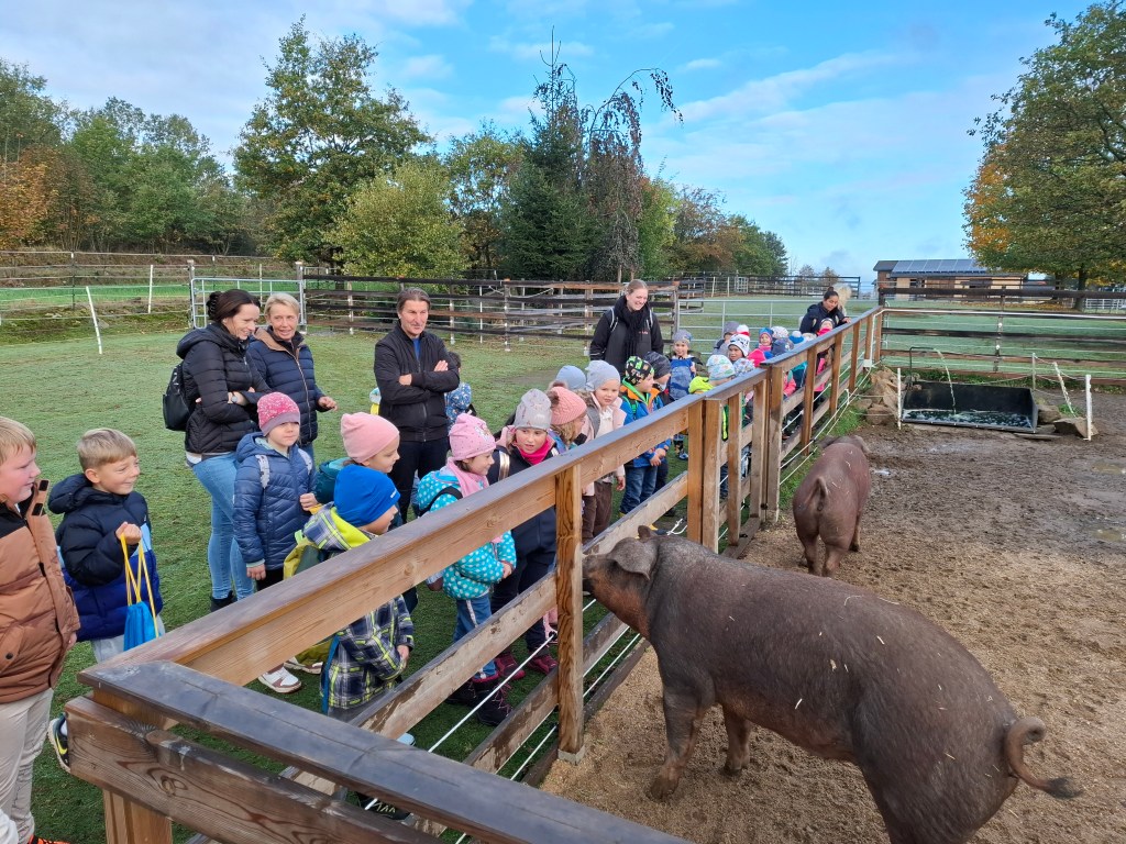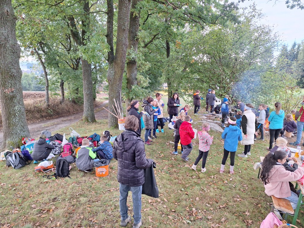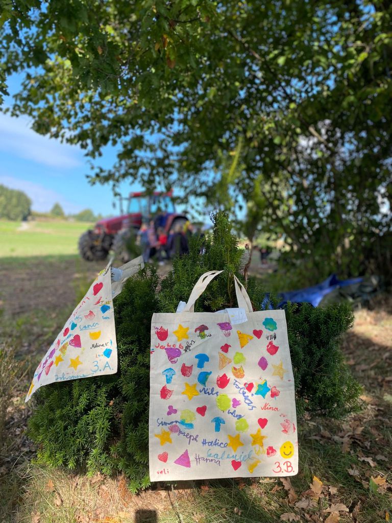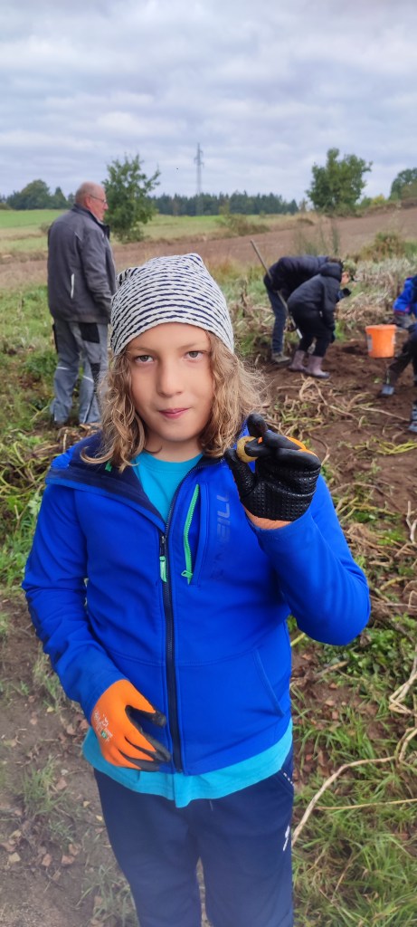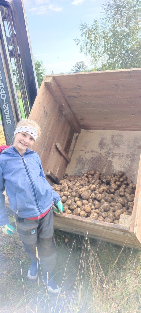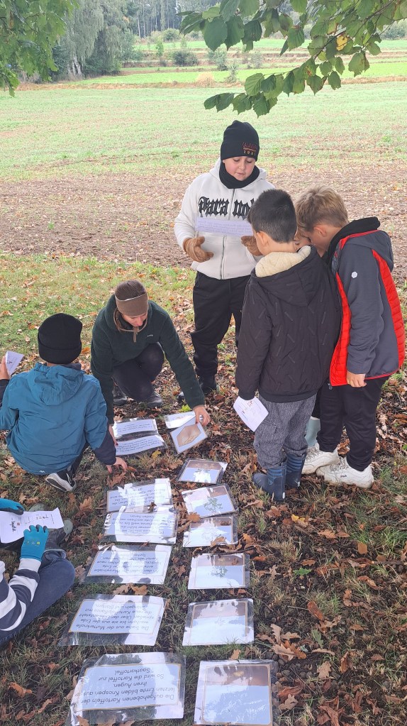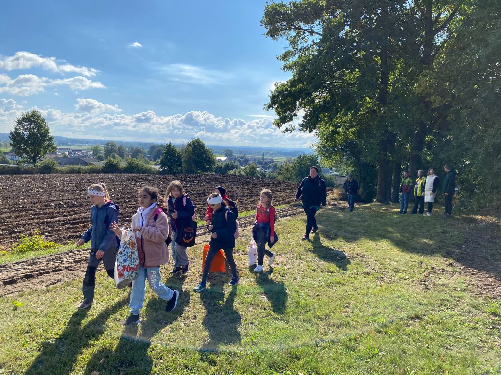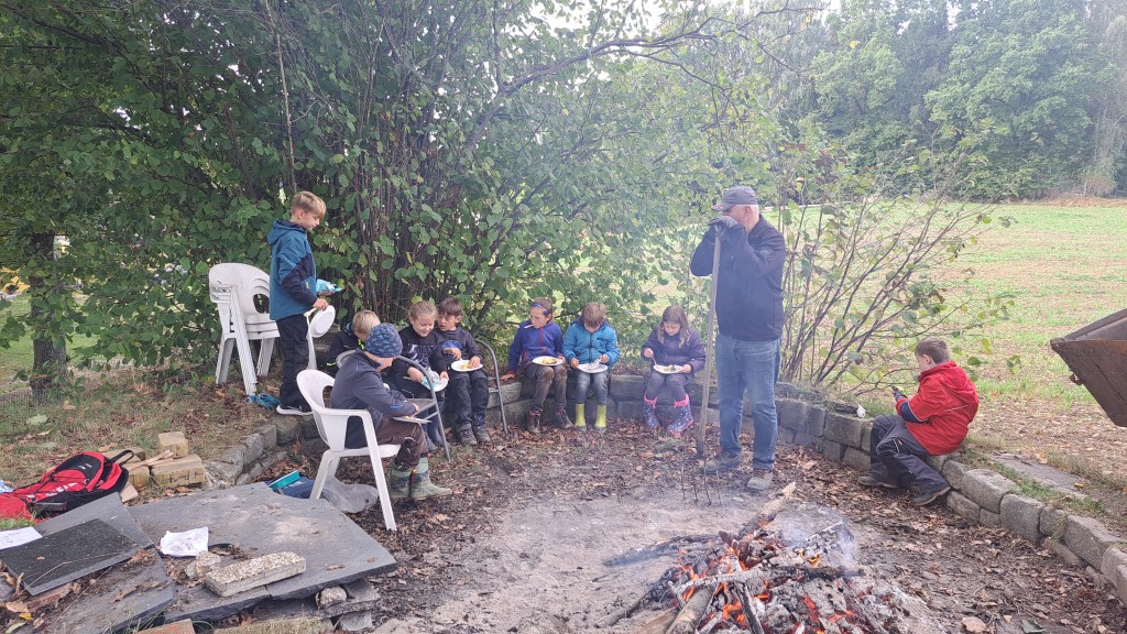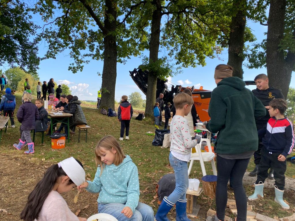 Wandertag nach Köttinghörmanns: Die Kinder der 3. Klassen durften bei Familie Brantner in Köttinghörmanns einen tollen Vormittag verbringen. Bei 4. Stationen konnten die Kinder wissenswertes zur Erdäpfel lernen, ein Klassensackerl mit Erdäpfelstempel bedrucken, Eräpfelerntemaschinen kennenlernen und auch Erdäpfel ernten dürfen. Zum Abschluss wurden die Erdäpfel in Folien gewickelt, im Lagerfeuer zubereitet und verspeist. Die Kinder waren begeistert und hatten jede Menge Spaß.