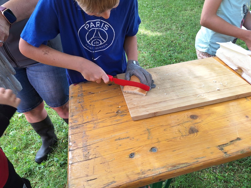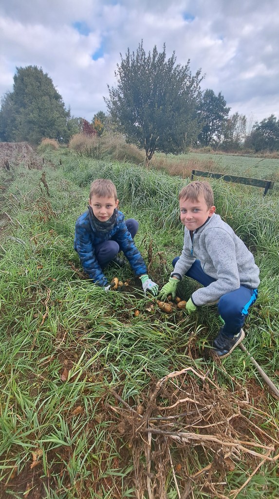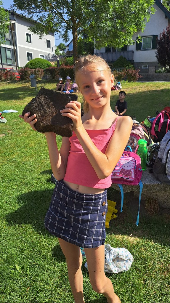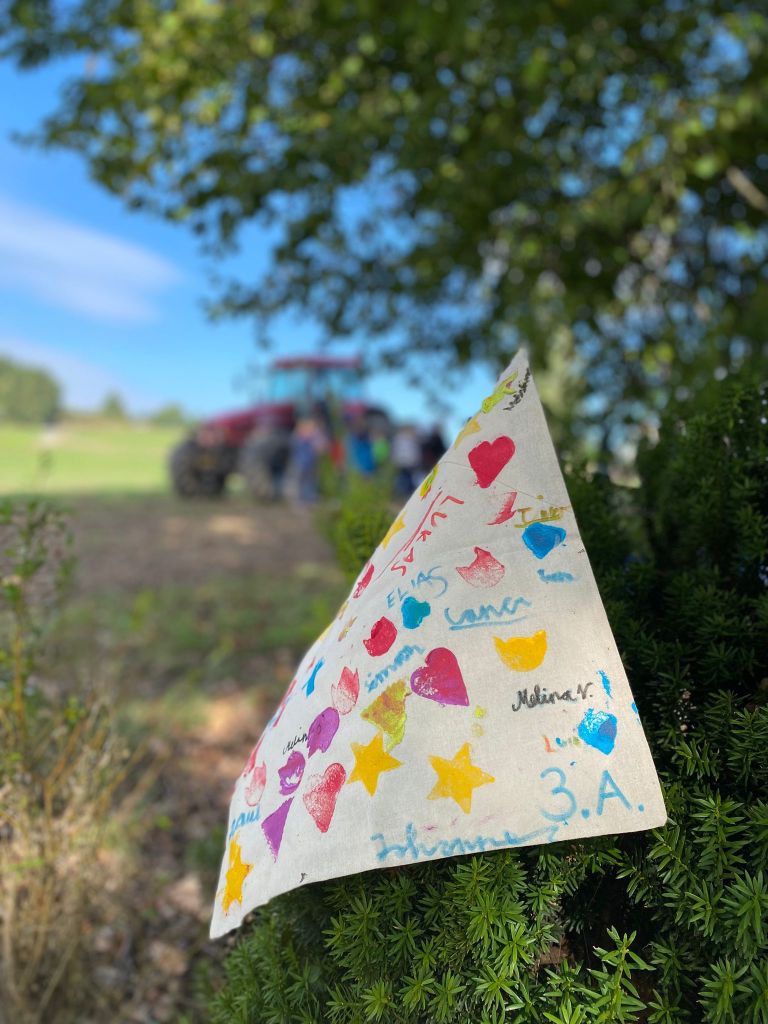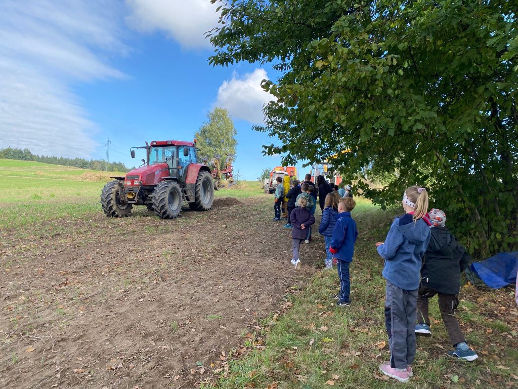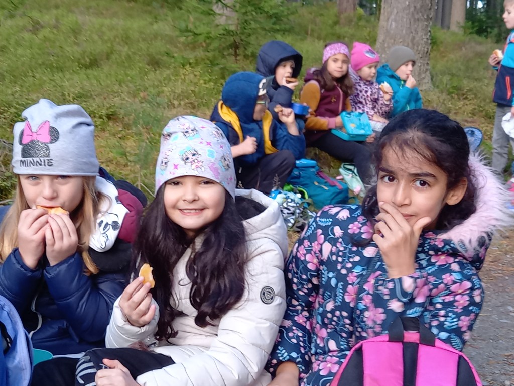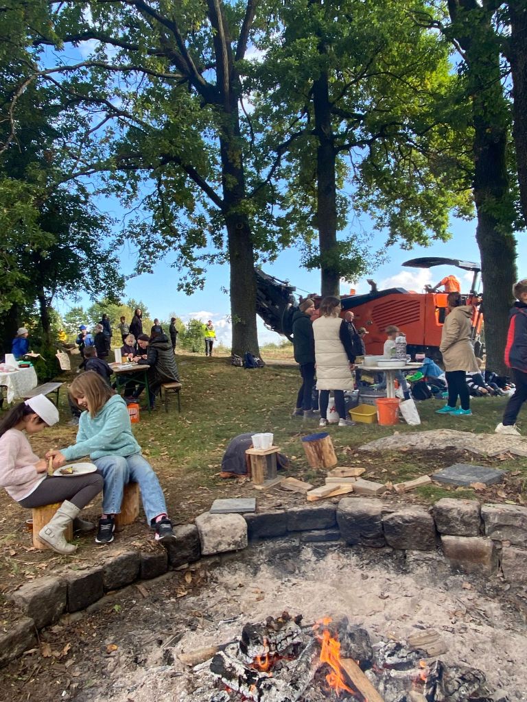 Wandertag nach Köttinghörmanns: Die Kinder der 3. Klassen durften bei Familie Brantner in Köttinghörmanns einen tollen Vormittag verbringen. Bei 4. Stationen konnten die Kinder wissenswertes zur Erdäpfel lernen, ein Klassensackerl mit Erdäpfelstempel bedrucken, Eräpfelerntemaschinen kennenlernen und auch Erdäpfel ernten dürfen. Zum Abschluss wurden die Erdäpfel in Folien gewickelt, im Lagerfeuer zubereitet und verspeist. Die Kinder waren begeistert und hatten jede Menge Spaß.