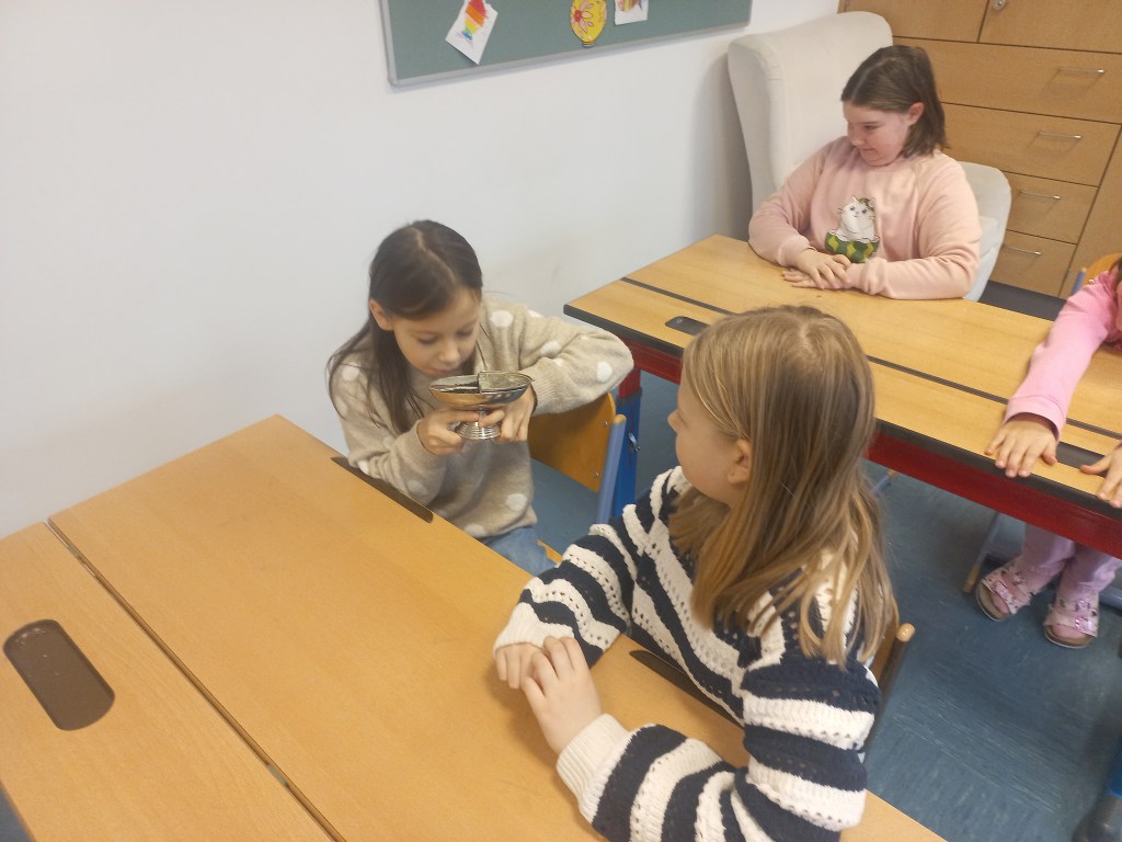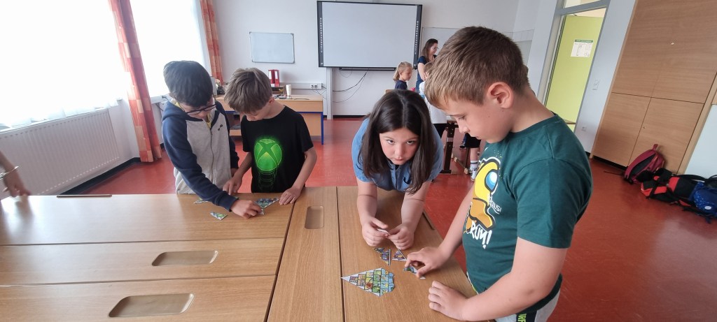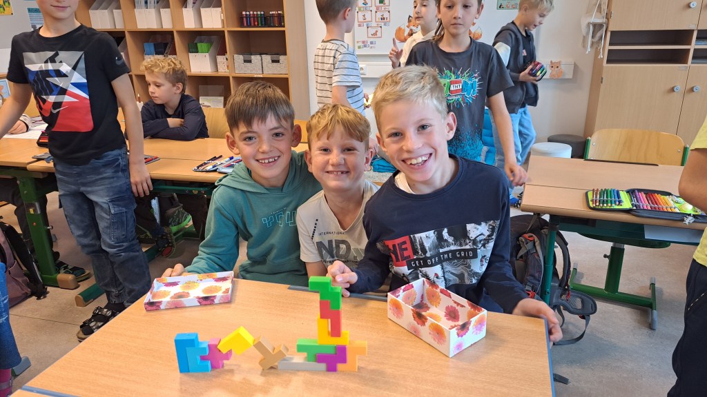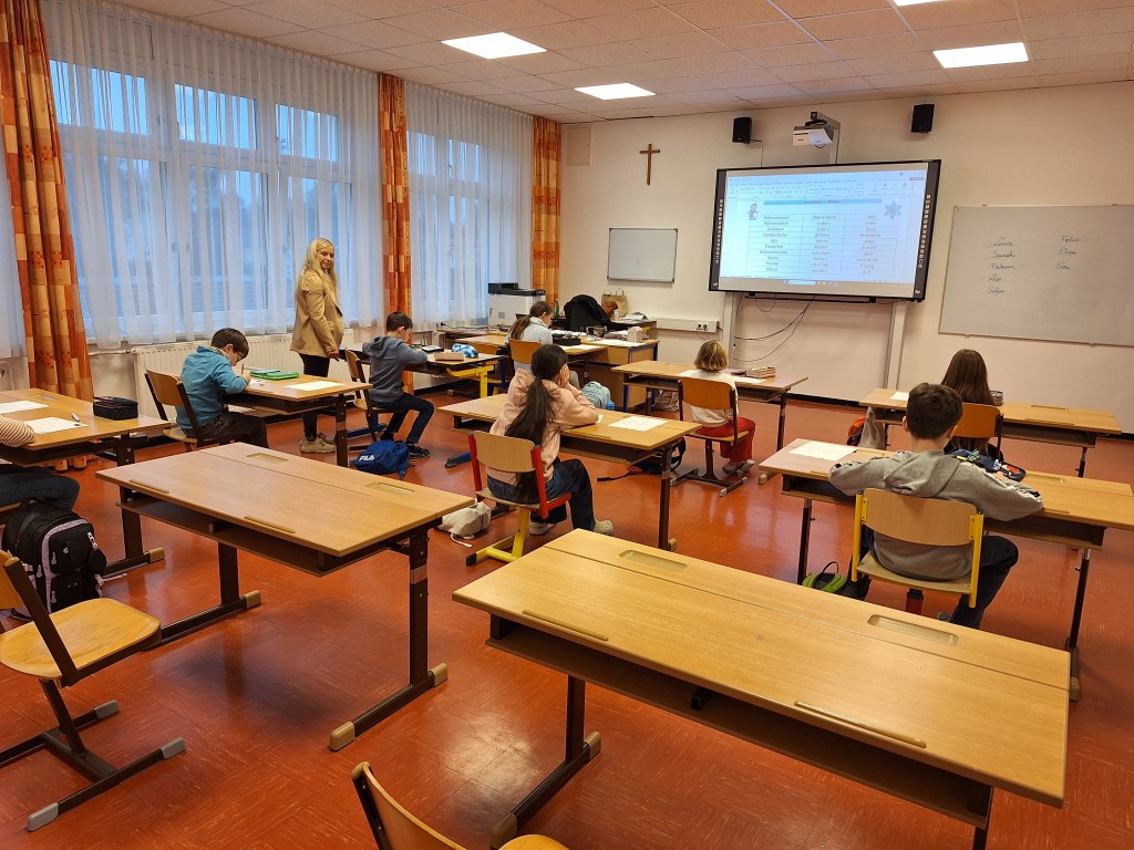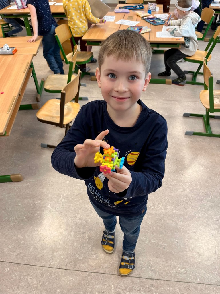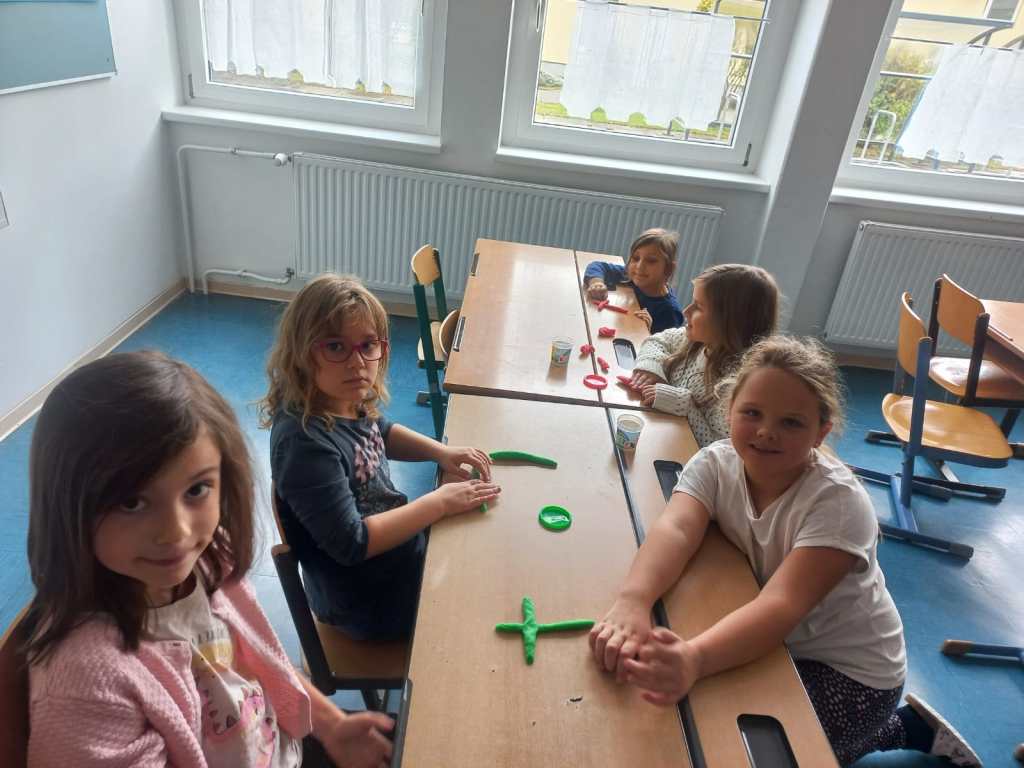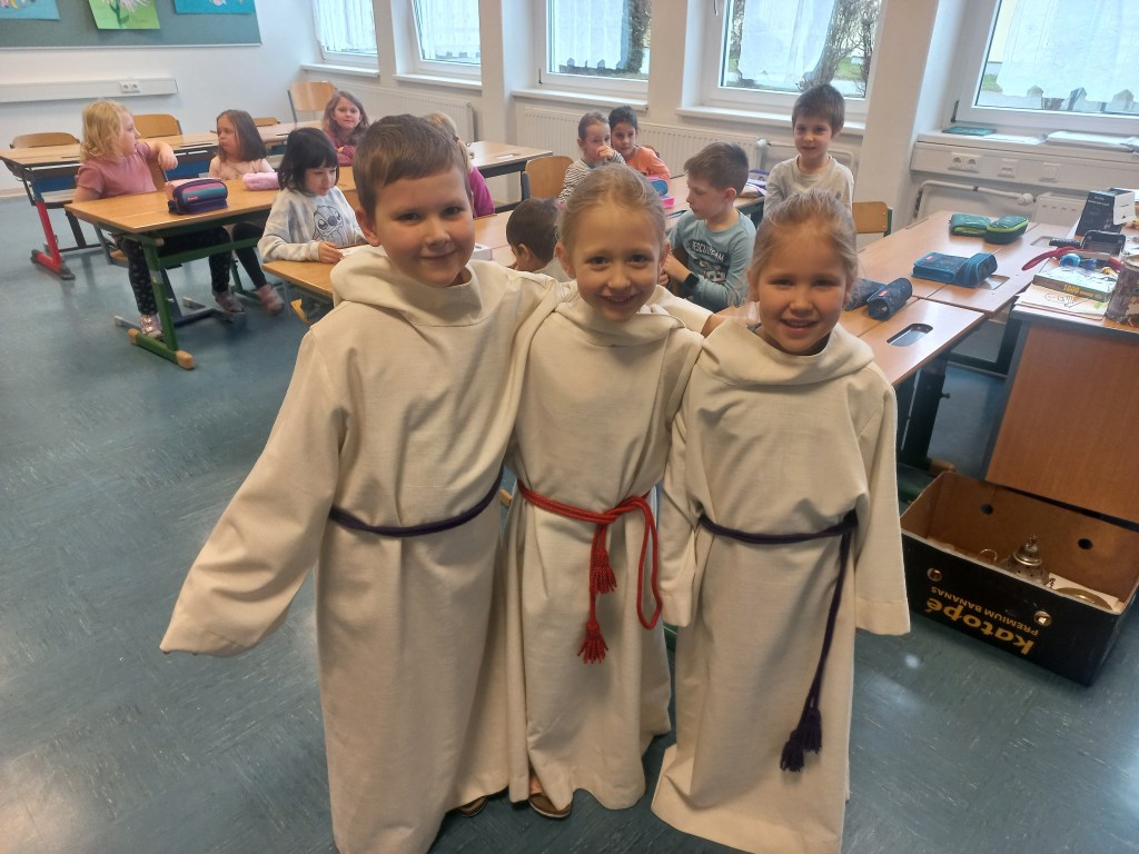 Im Religionsunterricht beschäftigten sich die Kinder der Klasse 1a mit dem Kreuz – dem zentralen Symbol des Christentums. An verschiedenen Stationen konnten sie das Kreuz auf vielfältige Weise entdecken und sie lernten spielerisch und kreativ seine Bedeutung kennen.