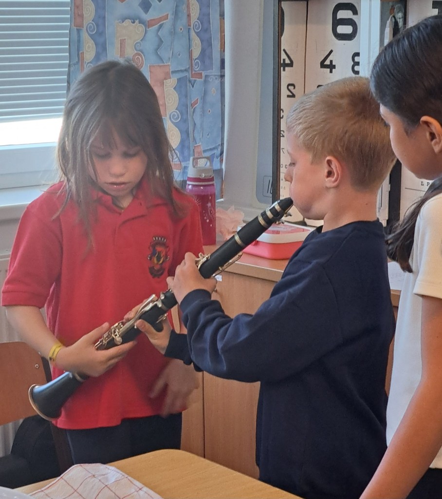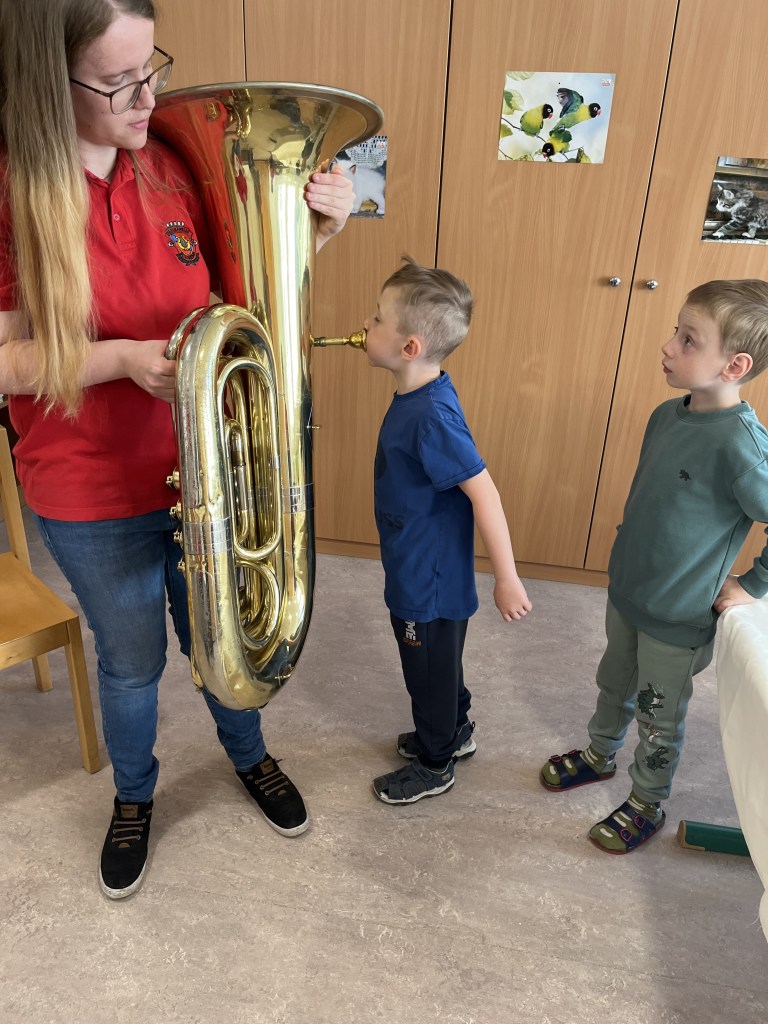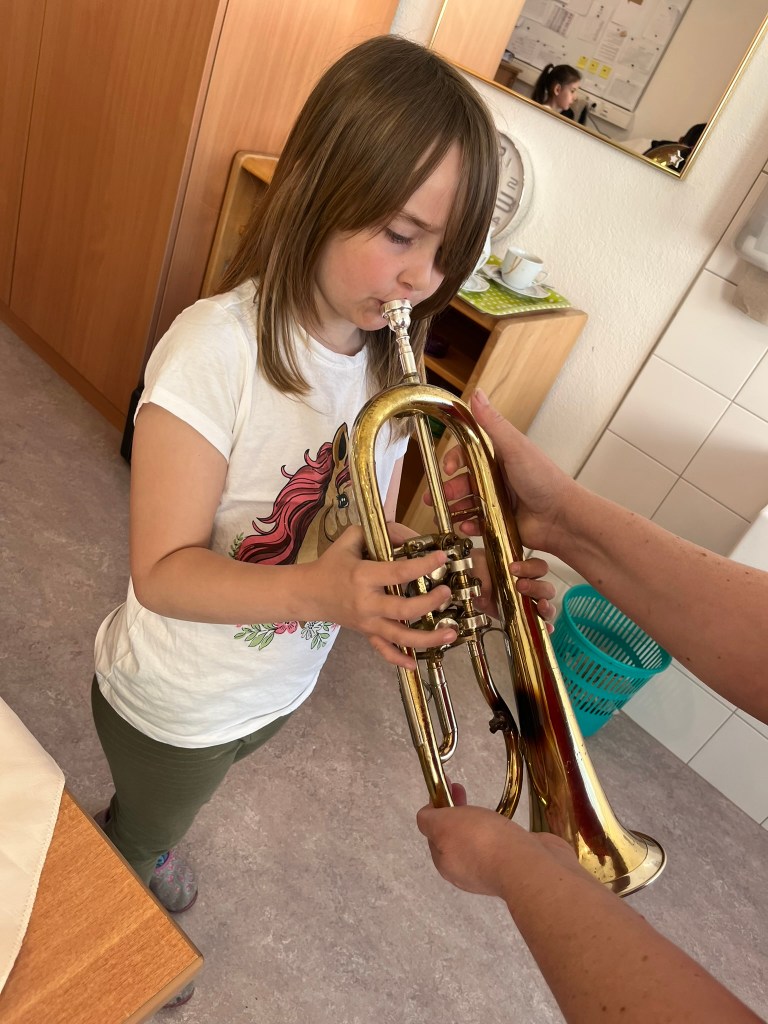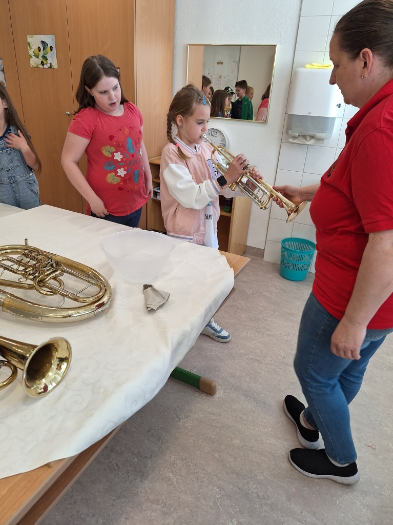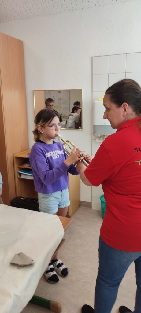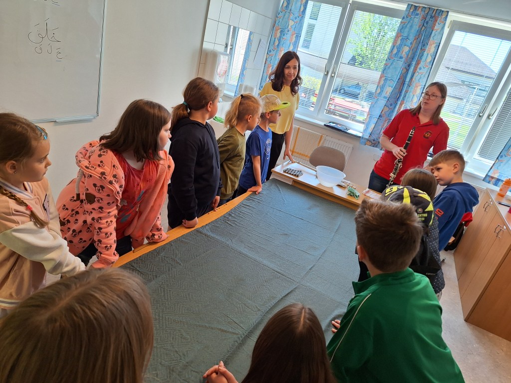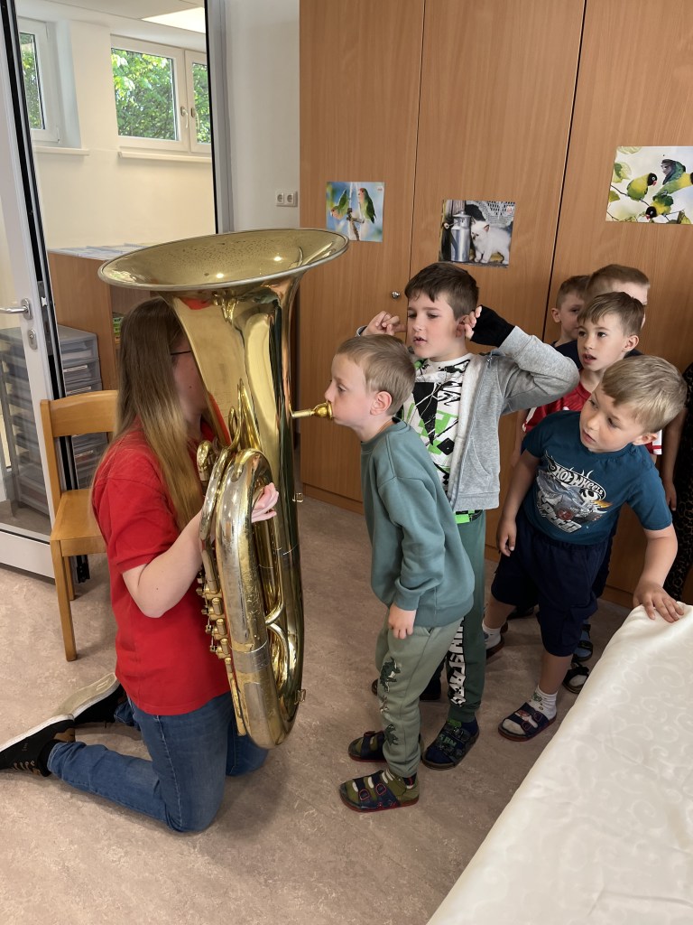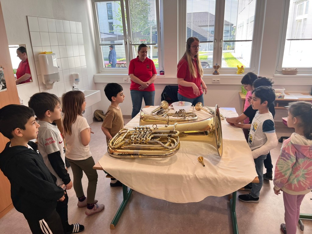 Am Dienstag, 30. April 2025, besuchte uns die Stadtkapelle Schrems. Die Kinder durften dabei einige Instrumente ausprobieren!