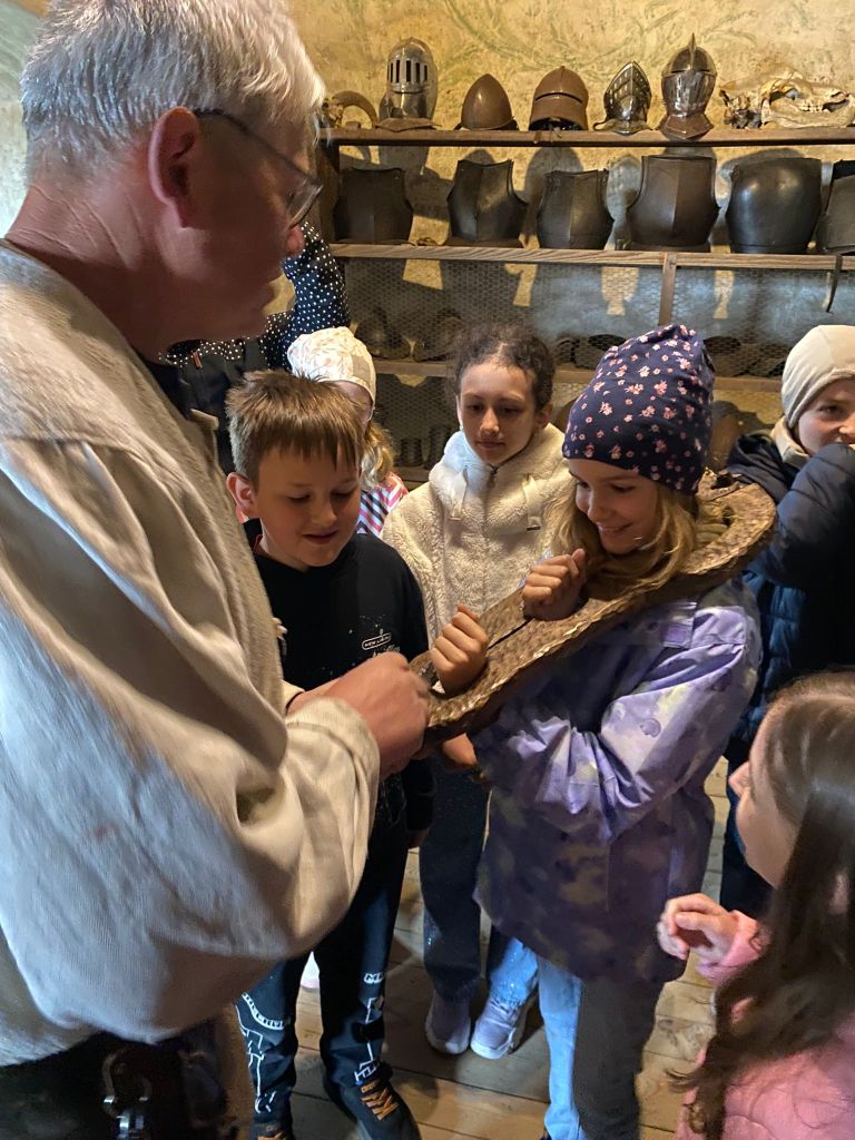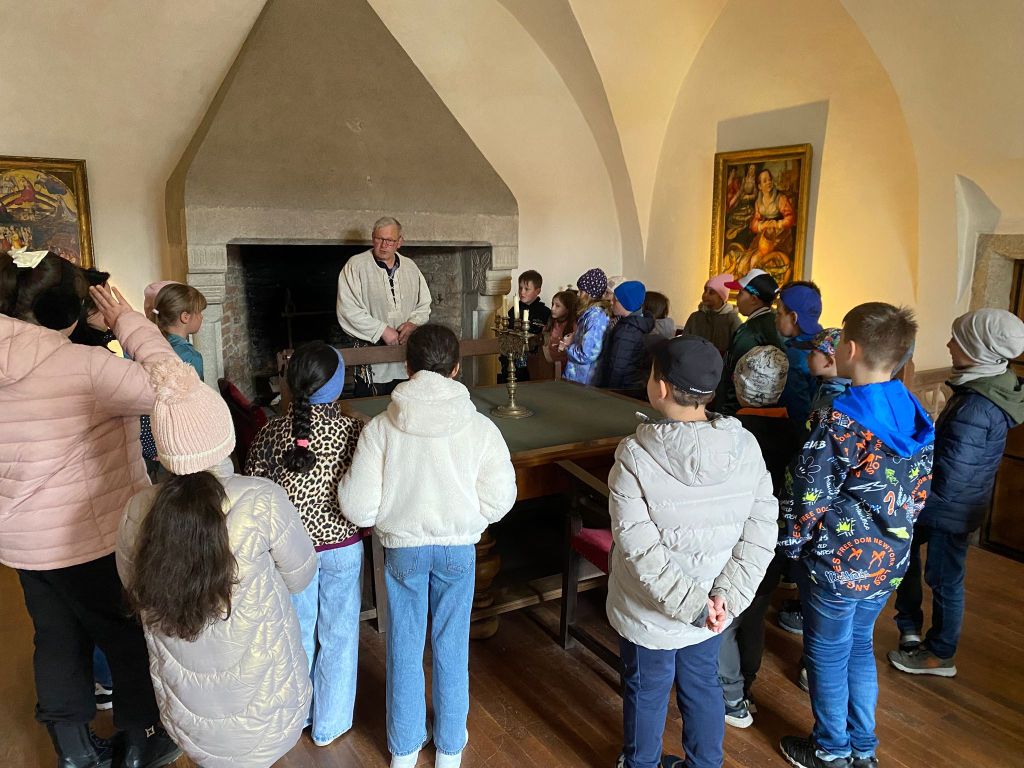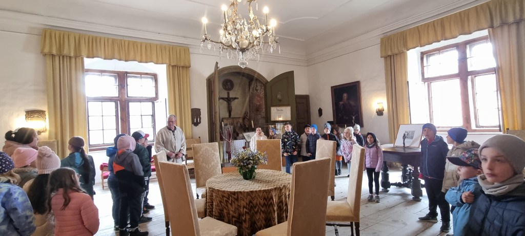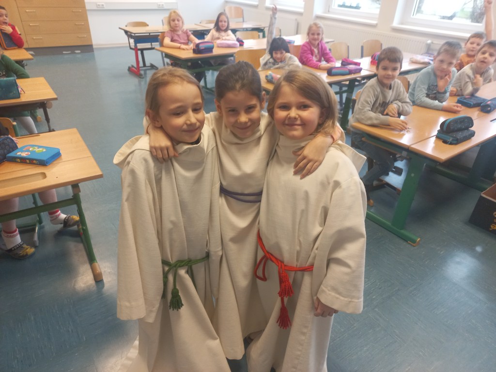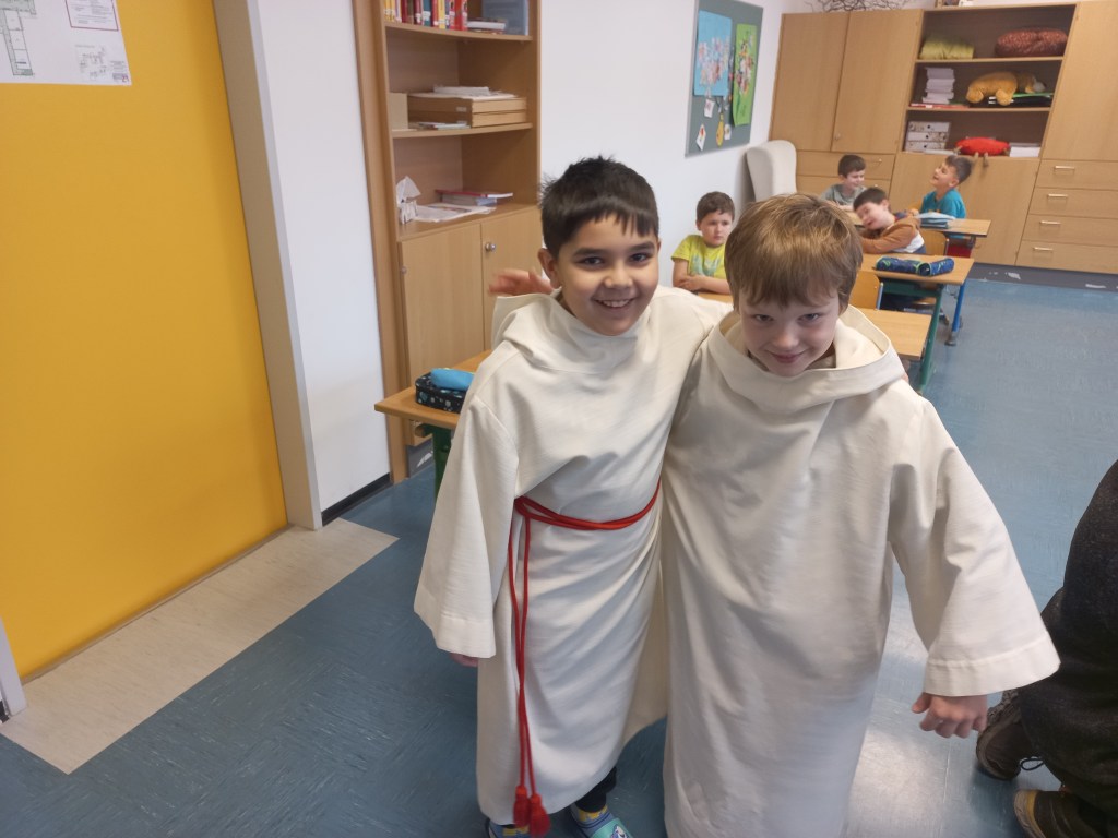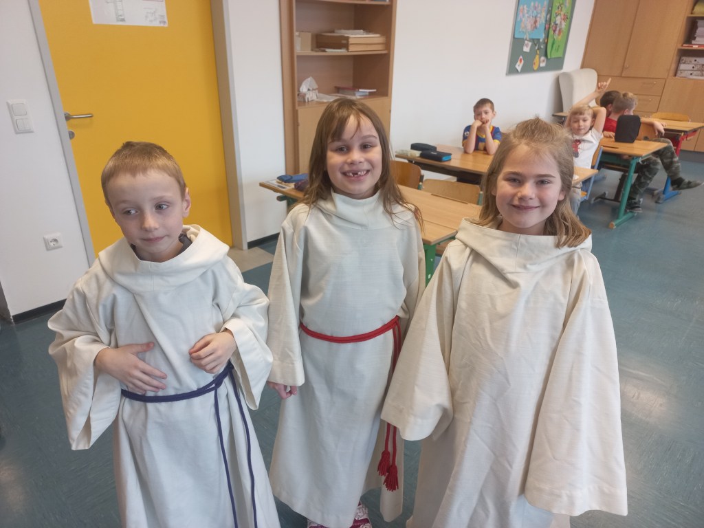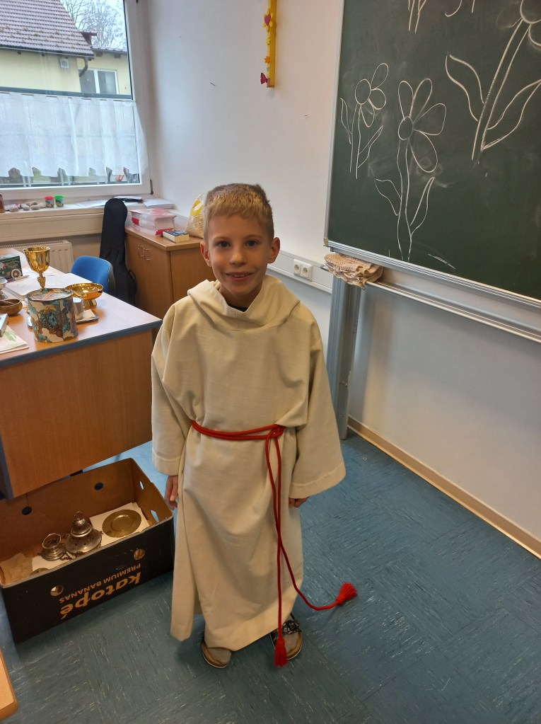 Die Schülerinnen und Schüler lernten wichtige liturgische Gegenstände wie Kelch, Glocken und Weihrauch kennen und erfuhren, welche Bedeutung sie im Gottesdienst haben. Ein besonderes Highlight war für viele das Anprobieren der Kutten, wodurch sie ganz praktisch erleben konnten, wie es sich anfühlt, selbst Ministrant/in zu sein.