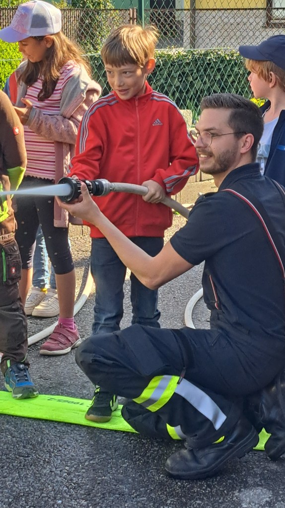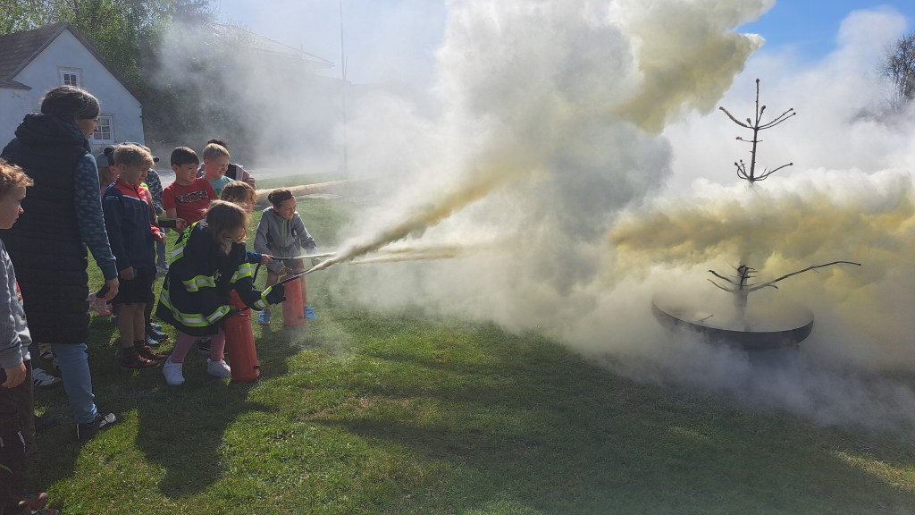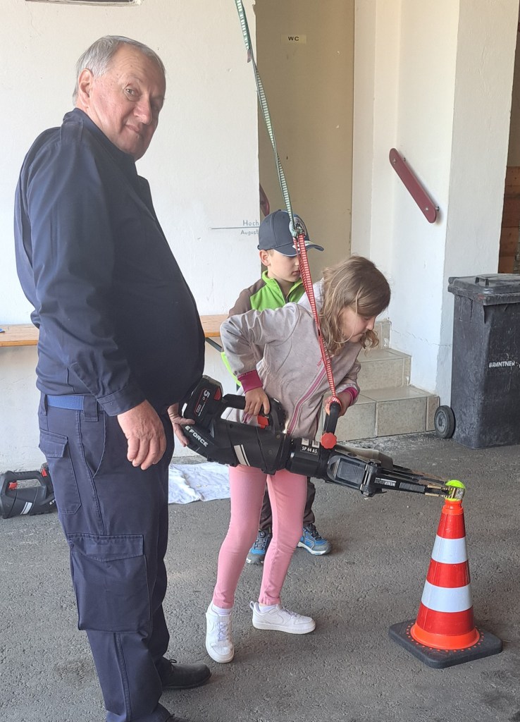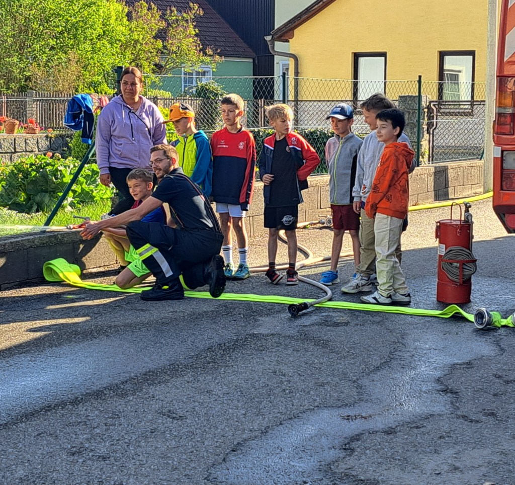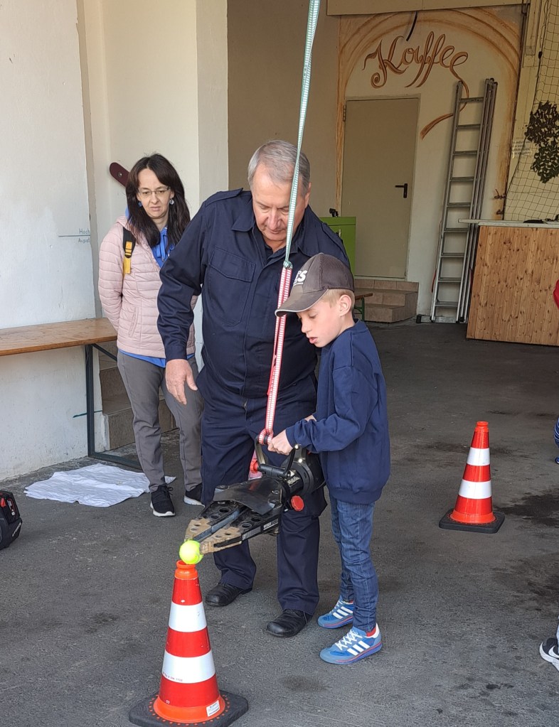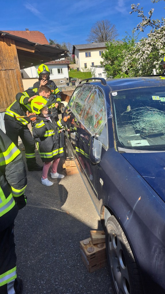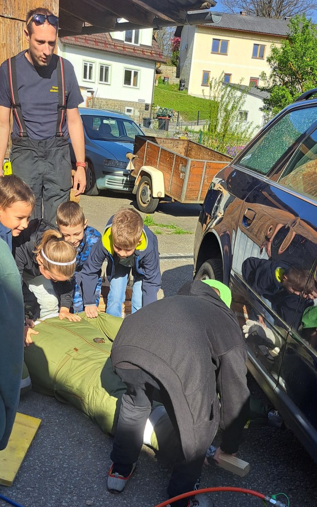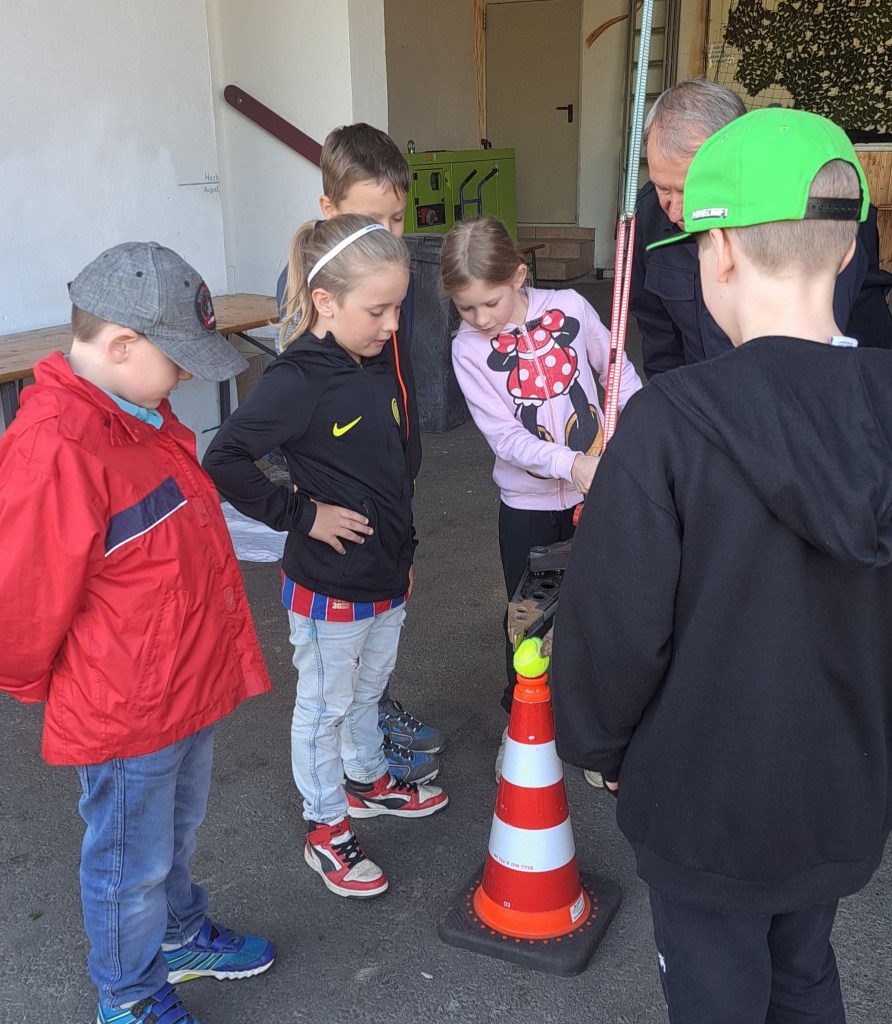 Am 30.April wanderten die 2. Klassen zur Feuerwehr nach Niederschrems. Die Freude war groß, als die Kinder die vorbereiteten Stationen sahen! Wir konnten die Feuerwehrausrüstung anprobieren, echtes Feuer mit dem Feuerlöscher löschen, mit dem Wasserschlauch auf ein Ziel spritzen, mit Hilfe des Hebekissens ein Auto hochheben und einiges mehr. Zuletzt durften wir sogar zusehen, wie eine Autotür mit der Hydraulischen Schere geöffnet wurde. Zur Stärkung gab es für alle großen und kleinen Feuerwehrfrauen und Feuerwehrmänner eine leckere Jause – herzlichen Dank für den spannenden und lehrreichen Vormittag!
