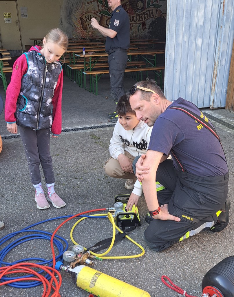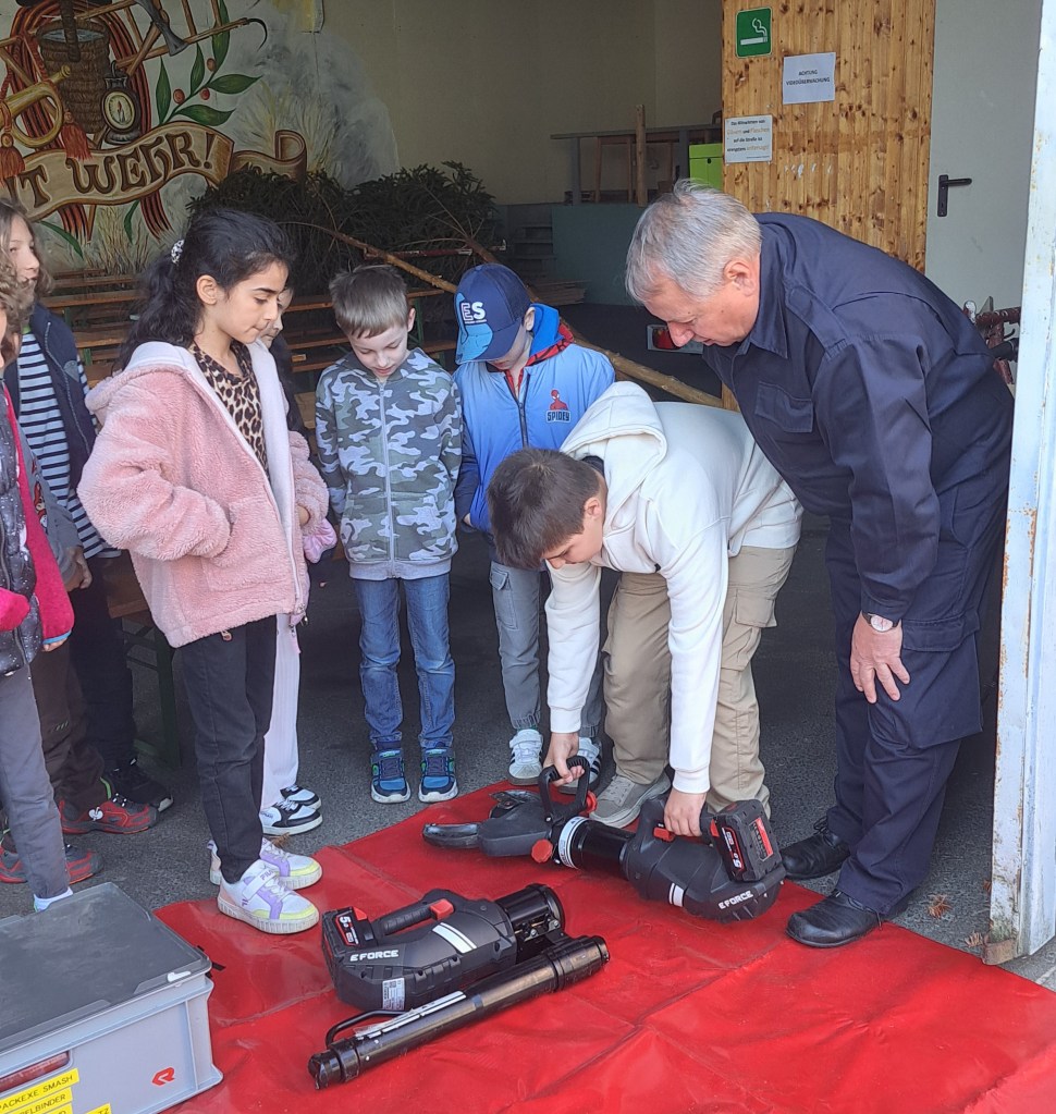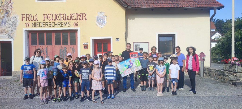 Am 30. April wanderten die 2. Klassen zur Feuerwehr nach Niederschrems. Die Freude war groß, als die Kinder die vorbereiteten Stationen sahen! Wir konnten die Feuerwehrausrüstung anprobieren, echtes Feuer mit dem Feuerlöscher löschen, mit dem Wasserschlauch auf ein Ziel spritzen, mit Hilfe des Hebekissens ein Auto hochheben und einiges mehr. Zuletzt durften wir sogar zusehen, wie eine Autotür mit der Hydraulischen Schere geöffnet wurde. Zur Stärkung gab es für alle großen und kleinen Feuerwehrfrauen und Feuerwehrmänner eine leckere Jause – herzlichen Dank für den spannenden und lehrreichen Vormittag!