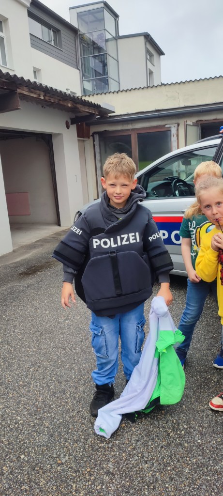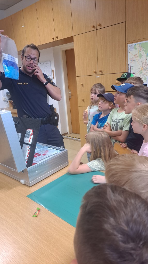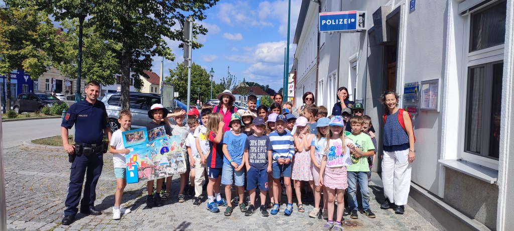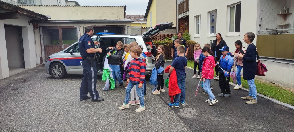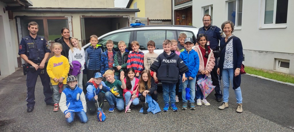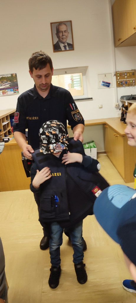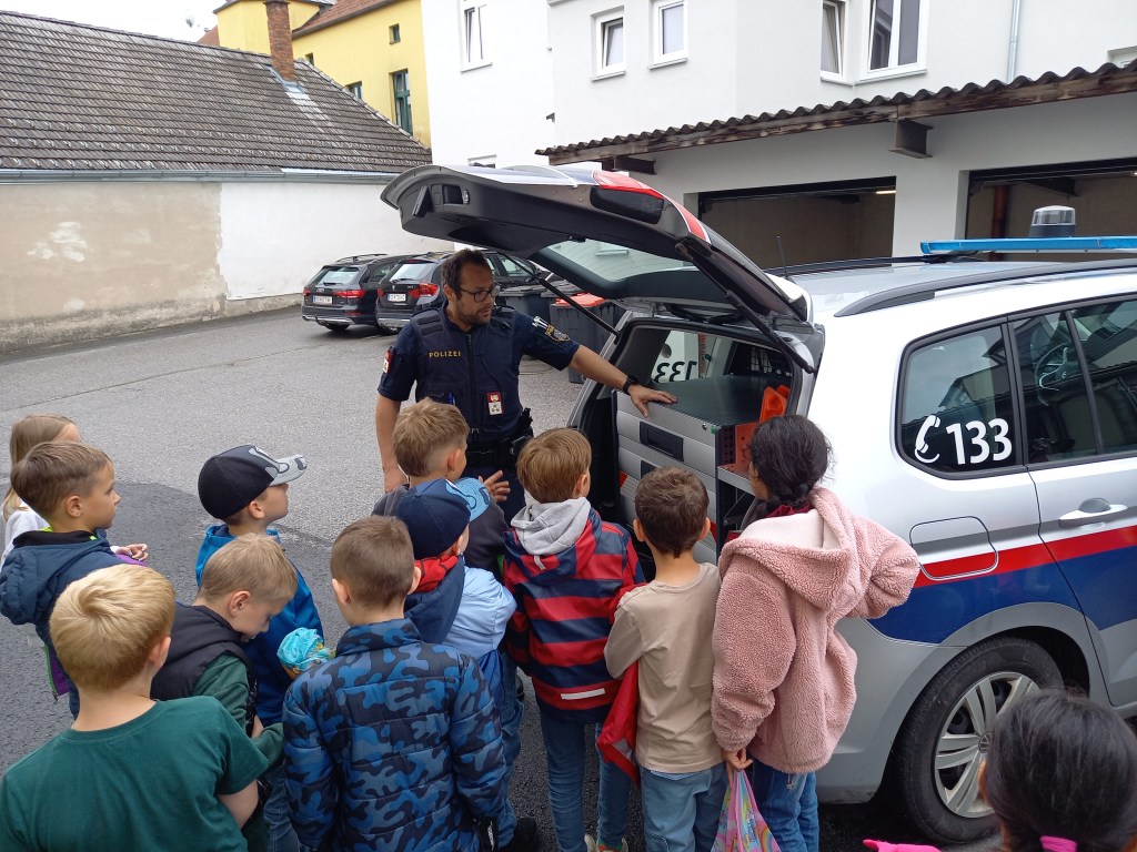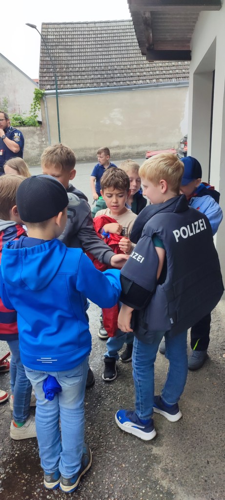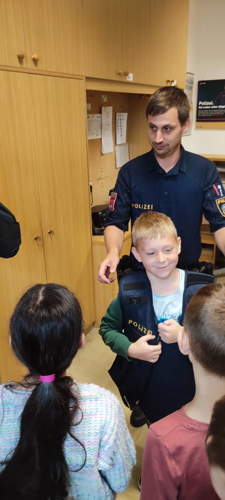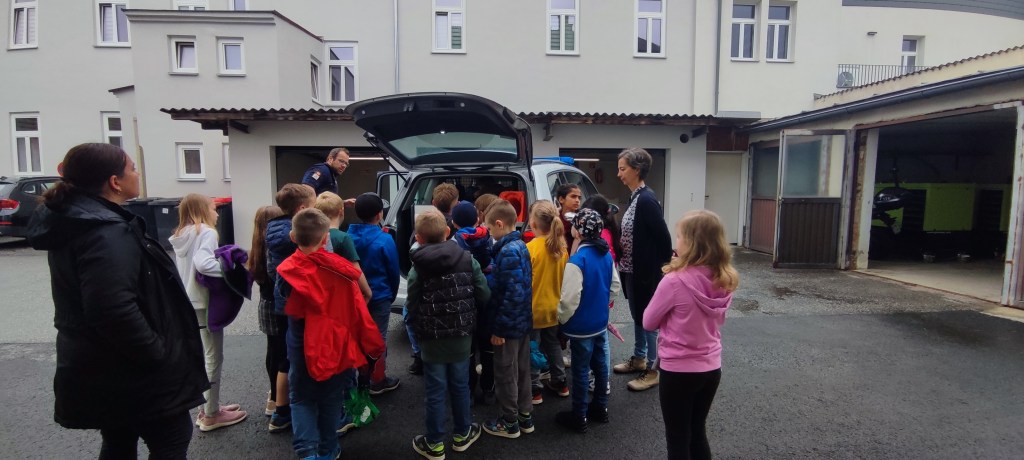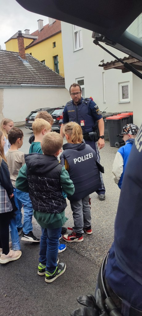 Zum Abschluss des Projekts über die Blaulichtorganisationen besuchten die 2. Klassen am 3. Juni die Polizeistelle in Schrems. Dabei wurden wir über die vielfältigen Aufgaben der Polizistinnen und Polizisten informiert, durften Ausrüstungsgegenstände und das Polizeiauto ansehen sowie Polizeigewand anprobieren. Ein Highlight war das Einschalten des Blaulichts und der Sirene am Polizeiauto. Vielen Dank für den spannenden Lehrausgang!