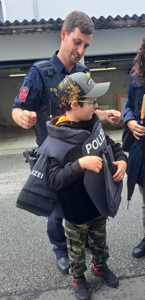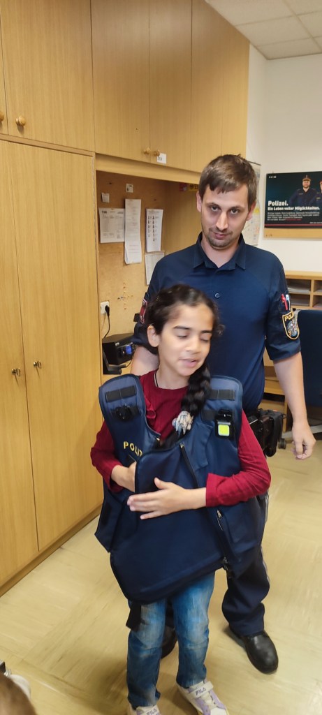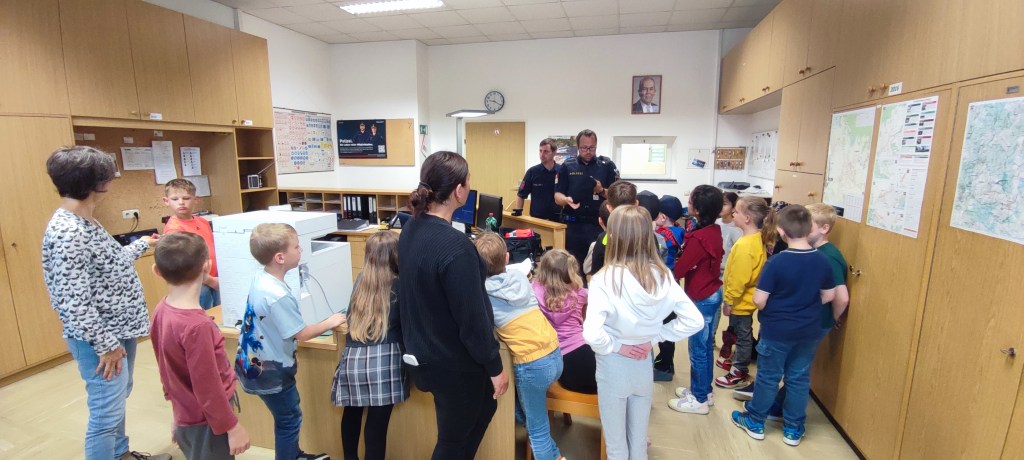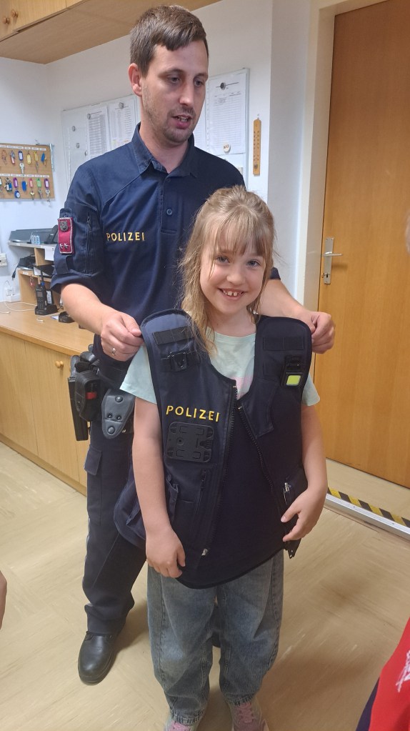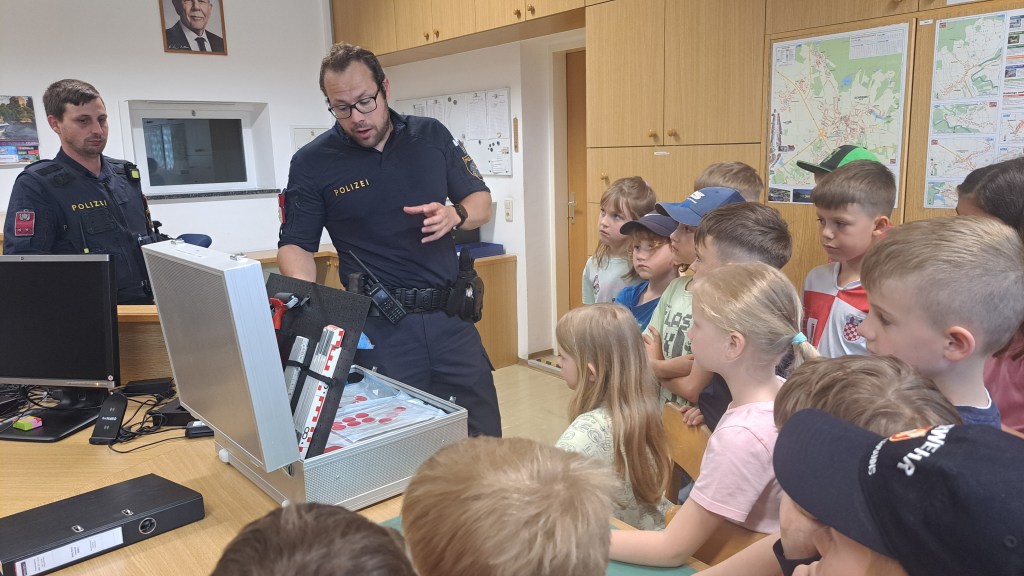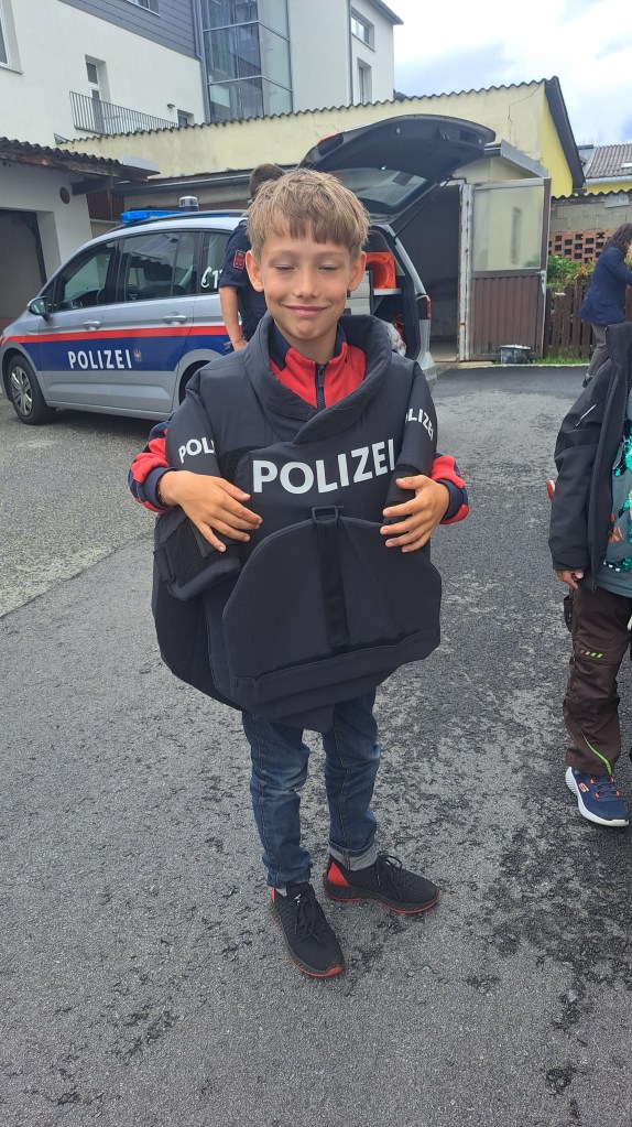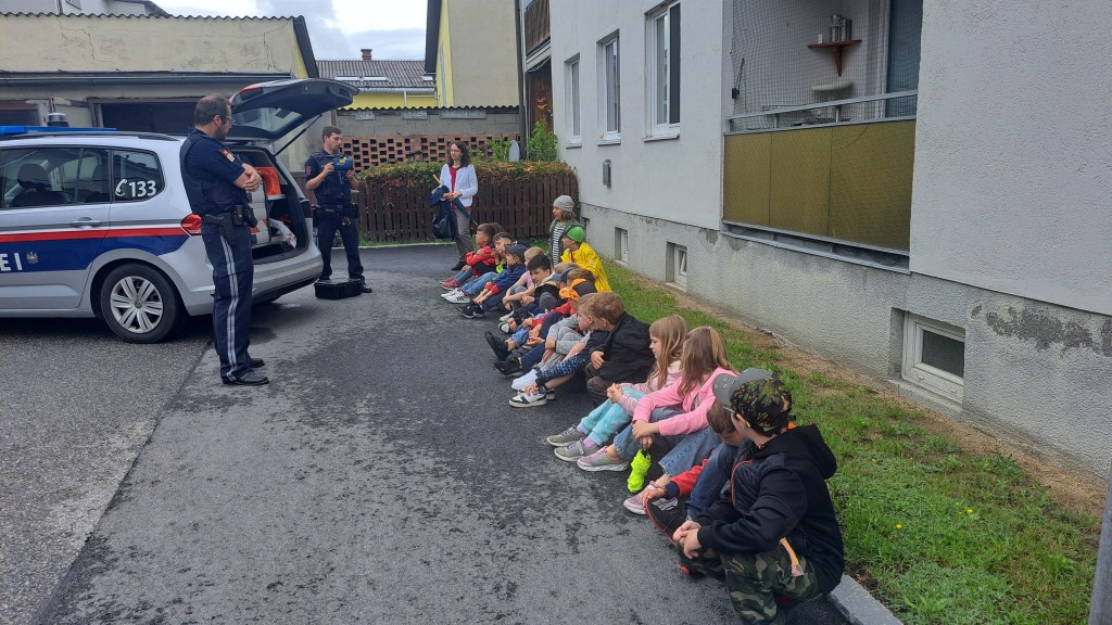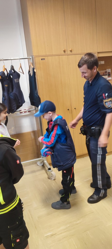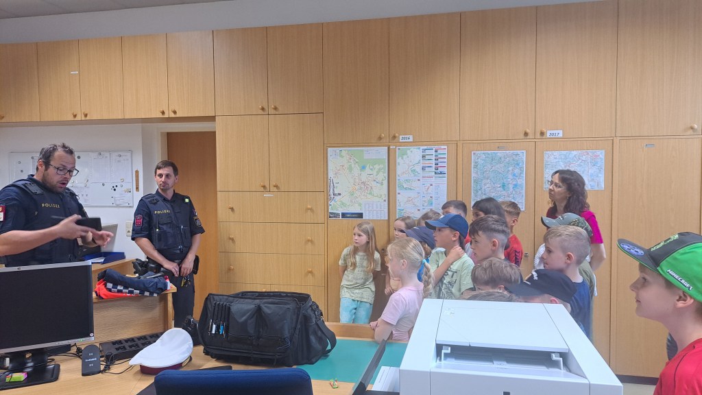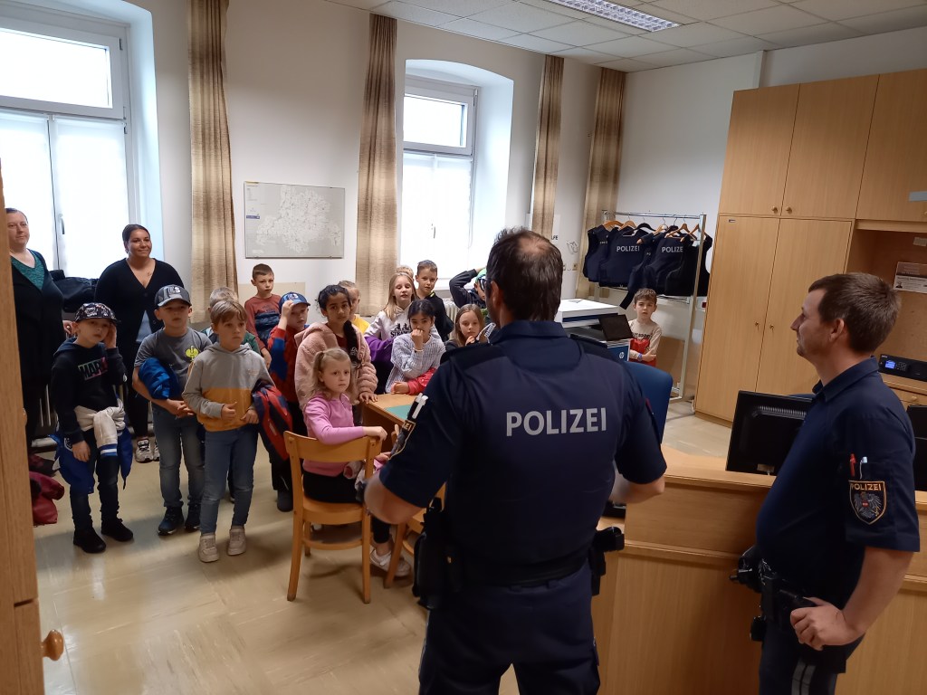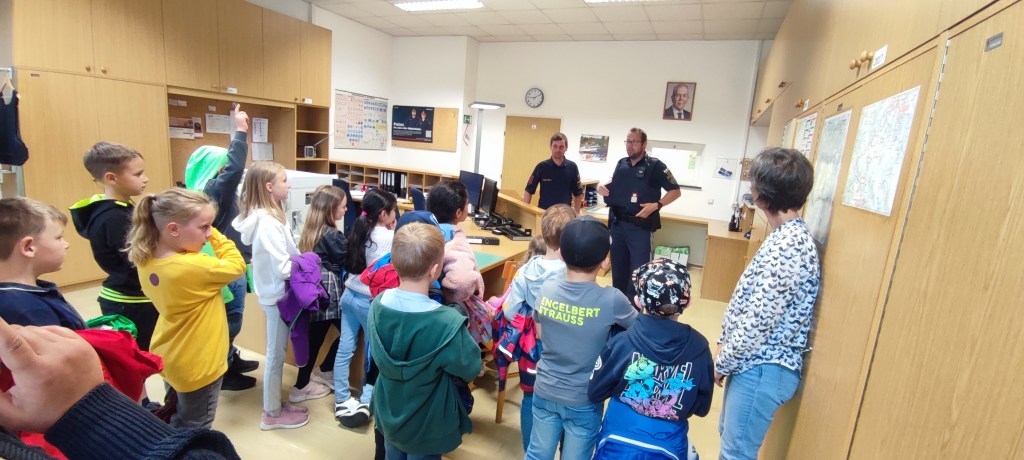 Zum Abschluss des Projekts über die Blaulichtorganisationen besuchten die 2. Klassen am 3. Juni die Polizeistelle in Schrems. Dabei wurden wir über die vielfältigen Aufgaben der Polizistinnen und Polizisten informiert, durften Ausrüstungsgegenstände und das Polizeiauto ansehen sowie Polizeigewand anprobieren. Ein Highlight war das Einschalten des Blaulichts und der Sirene am Polizeiauto. Vielen Dank für den spannenden Lehrausgang!
