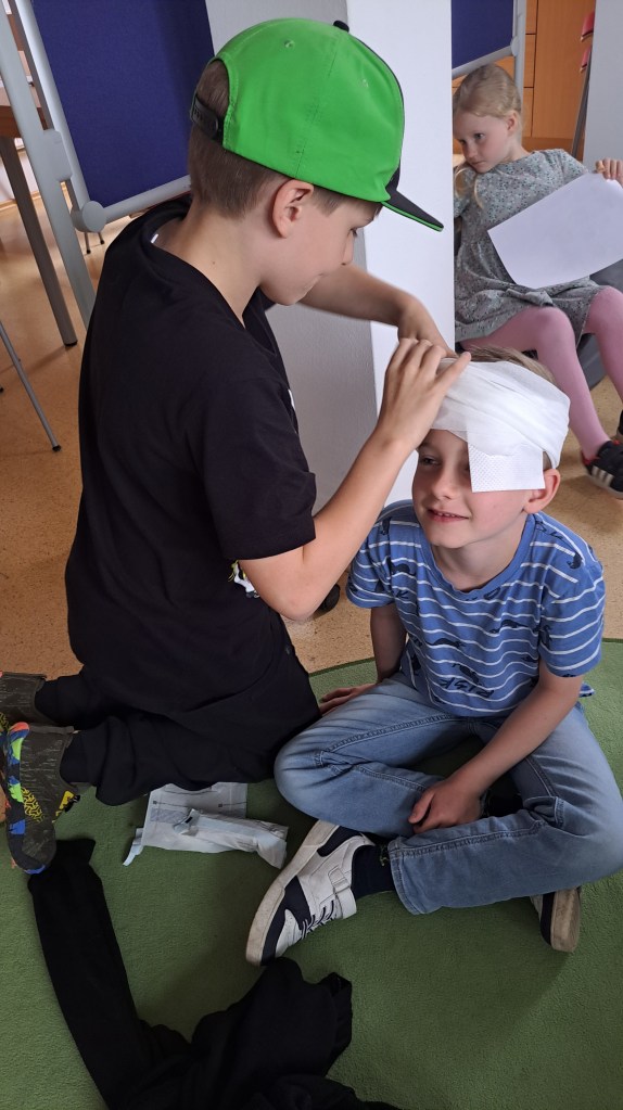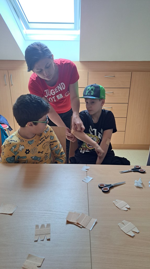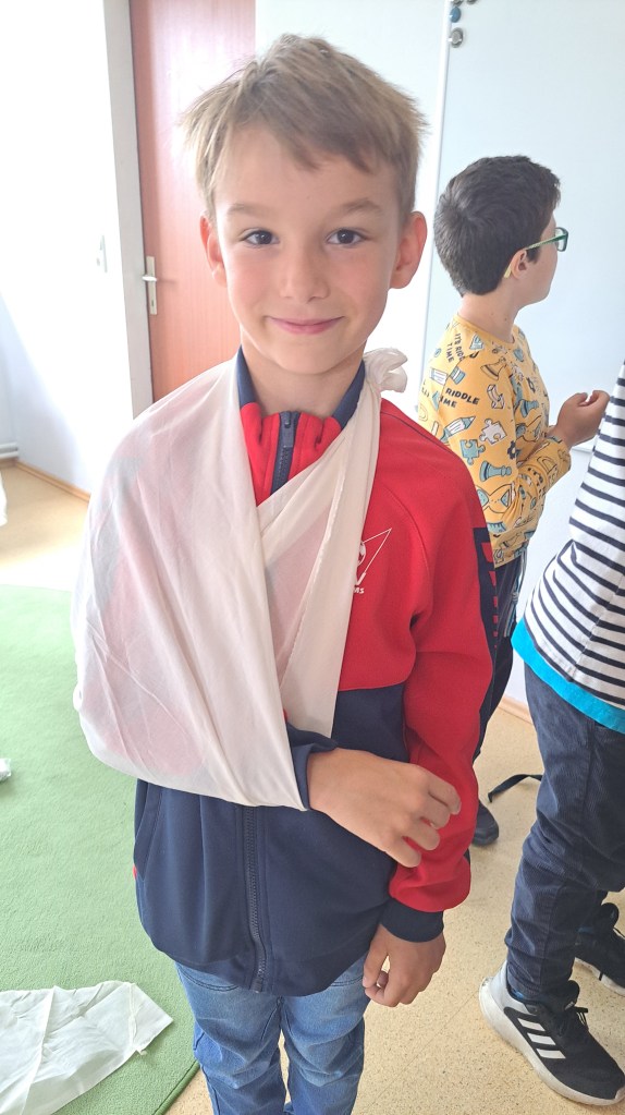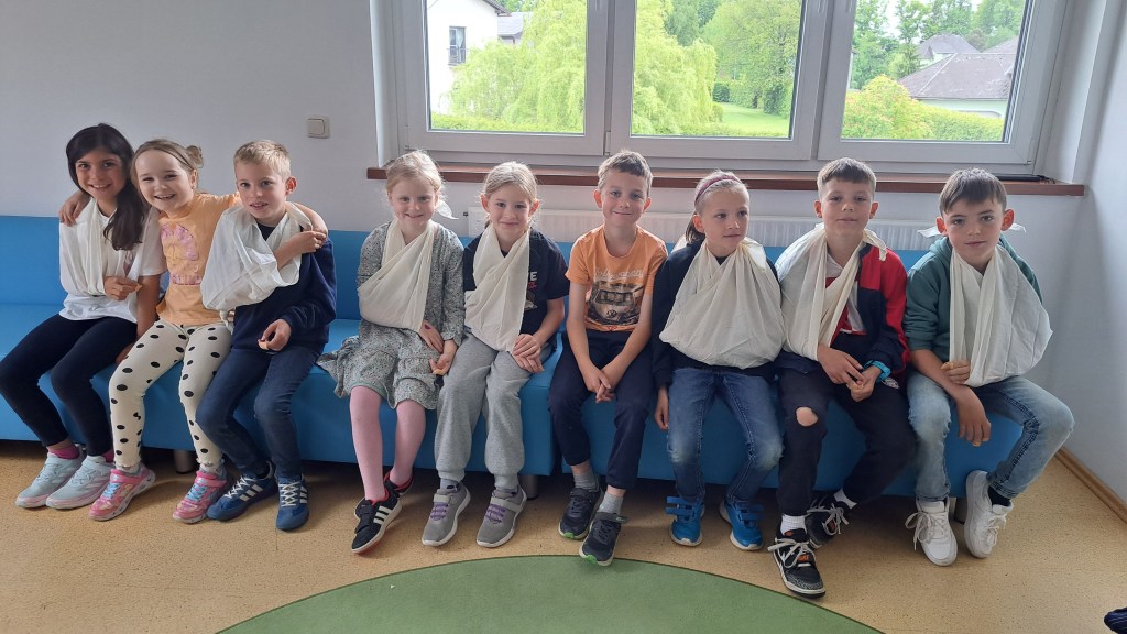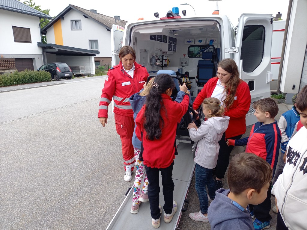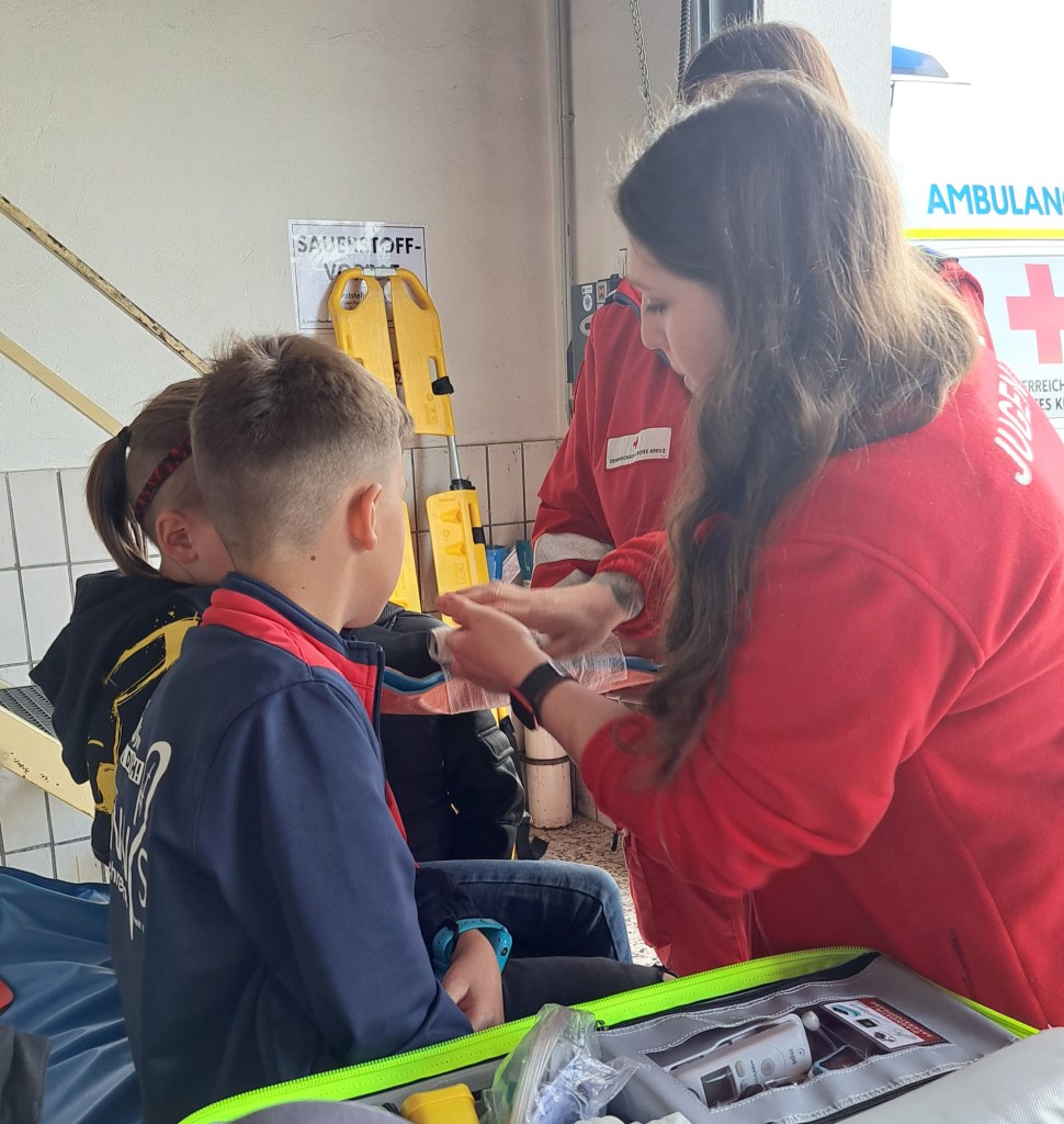 Am 20. Mai besuchten die 2. Klassen das Rote Kreuz in Schrems. In toll vorbereiteten Stationen lernten die Kinder ein Rettungsauto von innen kennen, das richtige Anbringen von Pflaster und Verbänden, die wichtigsten Erste-Hilfe-Maßnahmen und einiges mehr. Zum Abschluss gab es eine leckere Jause – herzlichen Dank für den lehrreichen Vormittag!