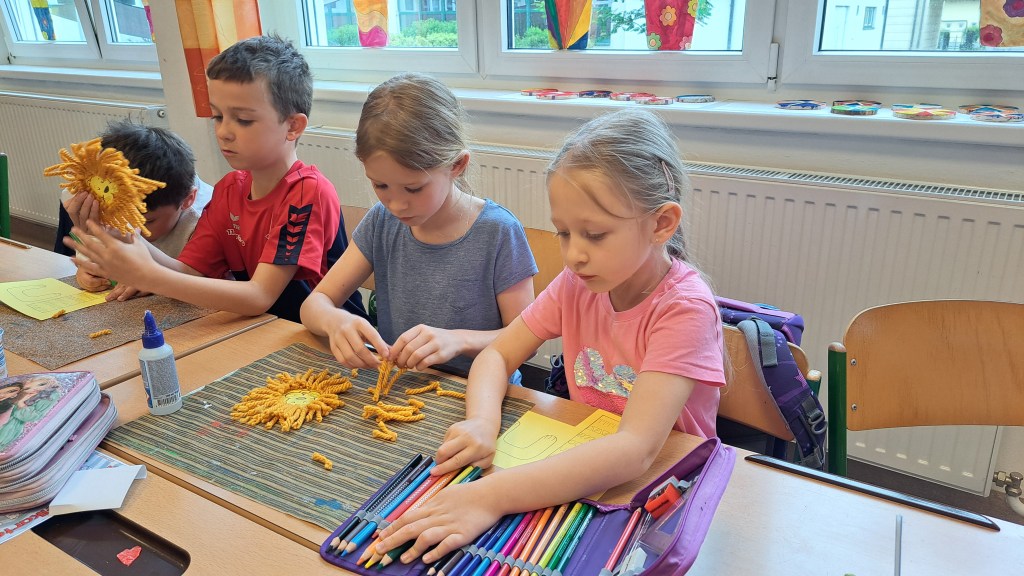 Im Religionsunterricht beschäftigten sich die Kinder der Klasse 1b mit dem Kreuz – dem zentralen Symbol des Christentums. An verschiedenen Stationen konnten sie das Kreuz auf vielfältige Weise entdecken und sie lernten spielerisch und kreativ seine Bedeutung kennen.