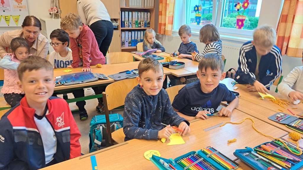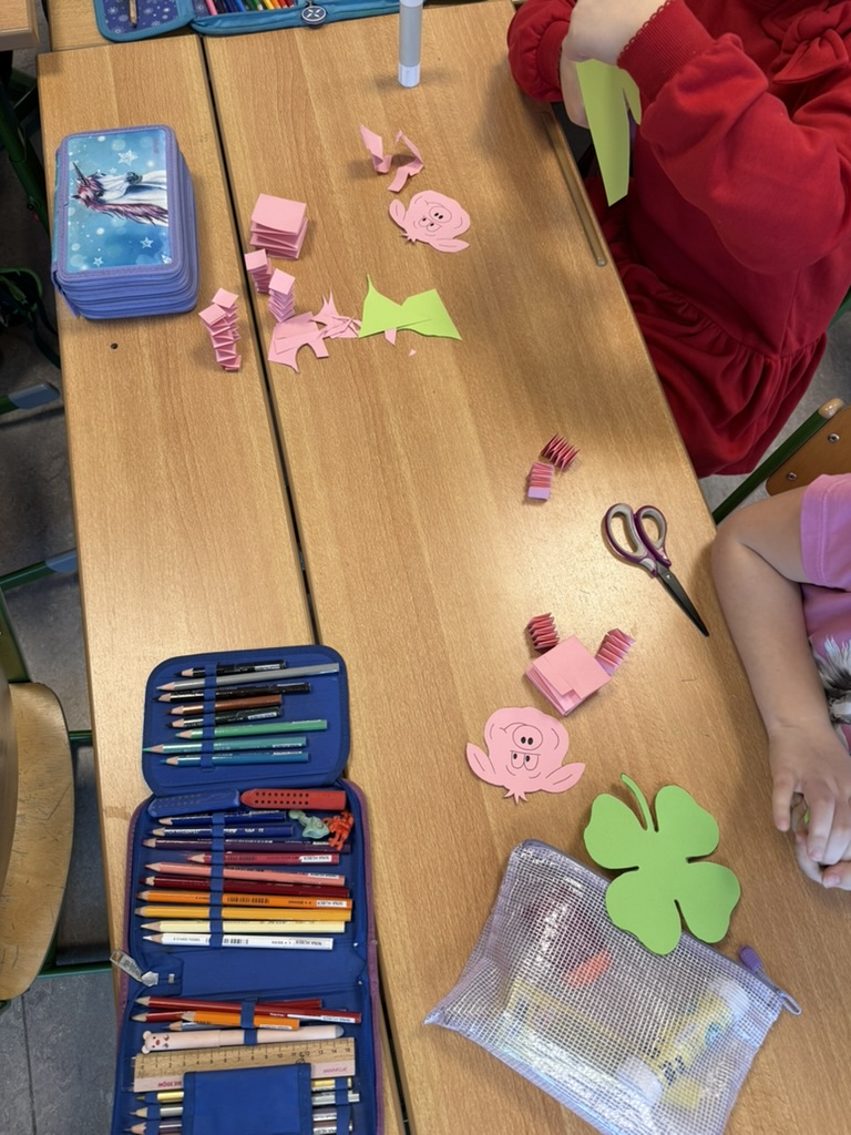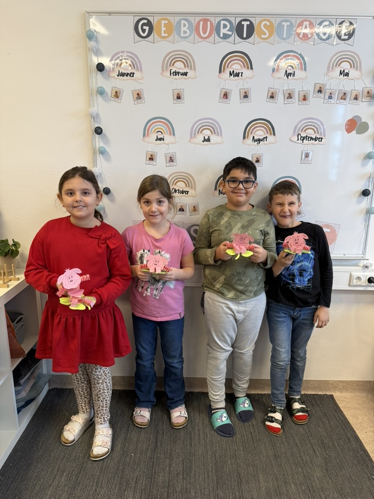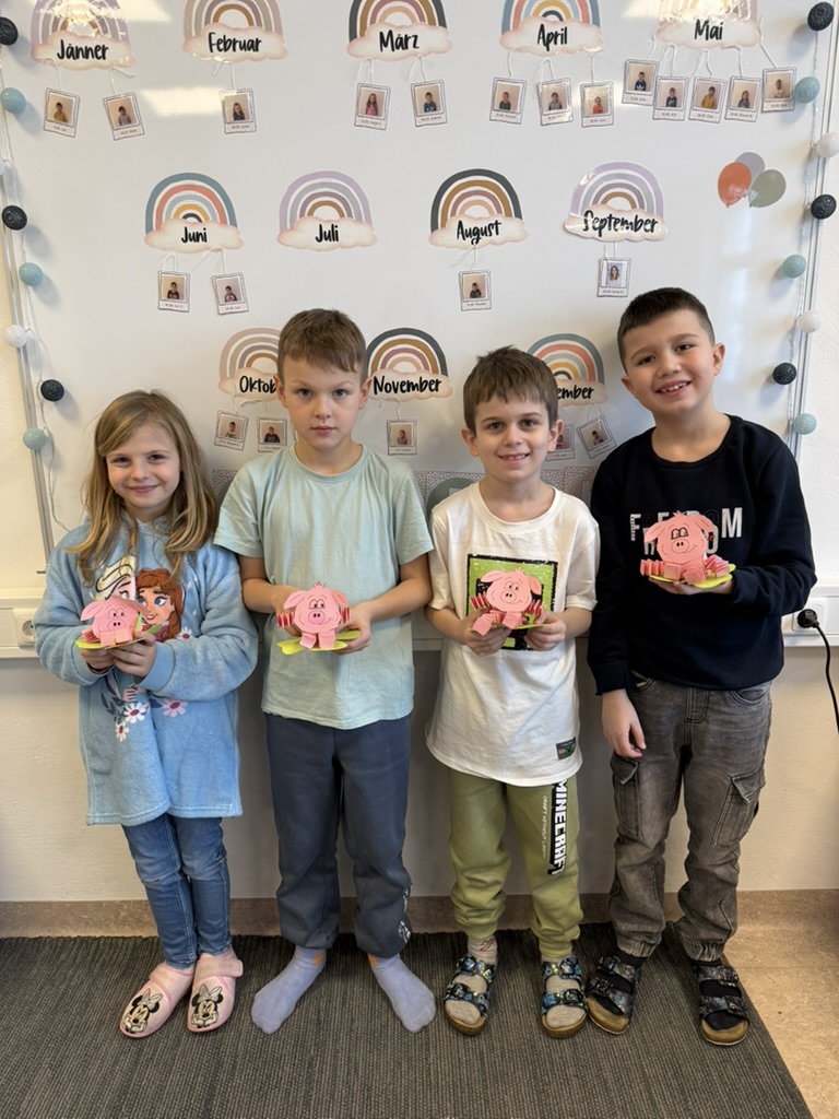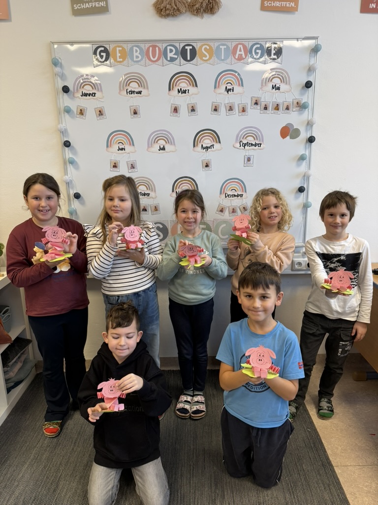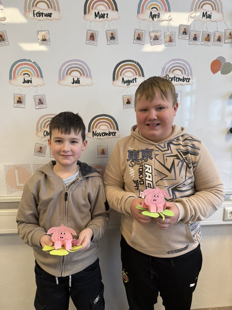 Mit viel Kreativität und guter Laune hat die Klasse 2b das neue Jahr begrüßt. Im Werkunterricht bastelten die Schülerinnen und Schüler kleine Glücksschweinchen aus Papier. Mit Schere, Kleber und Papier entstanden viele lustige Kunstwerke, die für Glück im neuen Jahr stehen sollen.