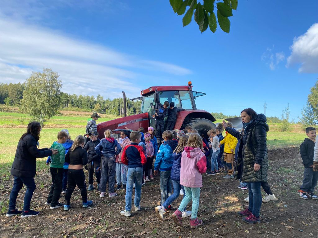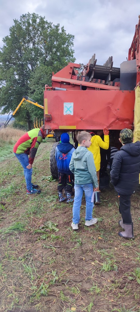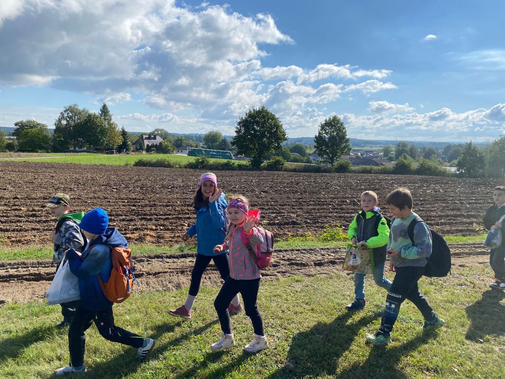 Wandertag nach Köttinghörmanns: Die Kinder der 3. Klassen durften bei Familie Brantner in Köttinghörmanns einen tollen Vormittag verbringen. Bei 4. Stationen konnten die Kinder wissenswertes zur Erdäpfel lernen, ein Klassensackerl mit Erdäpfelstempel bedrucken, Erdäpfelerntemaschinen kennenlernen und auch Erdäpfel ernten dürfen. Zum Abschluss wurden die Erdäpfel in Folien gewickelt, im Lagerfeuer zubereitet und verspeist. Die Kinder waren begeistert und hatten jede Menge Spaß.