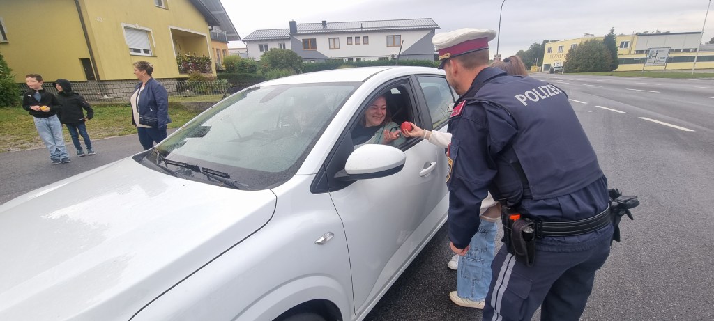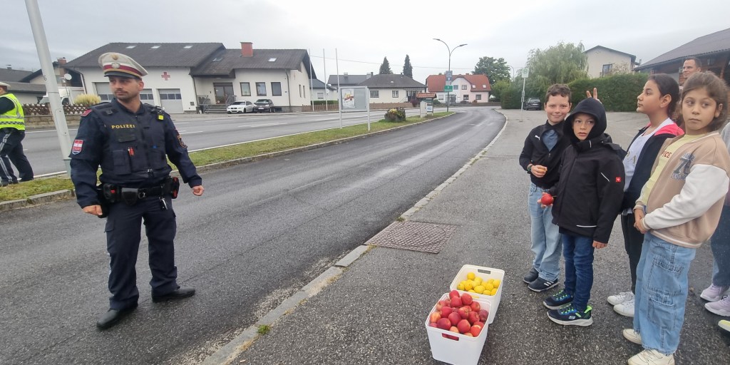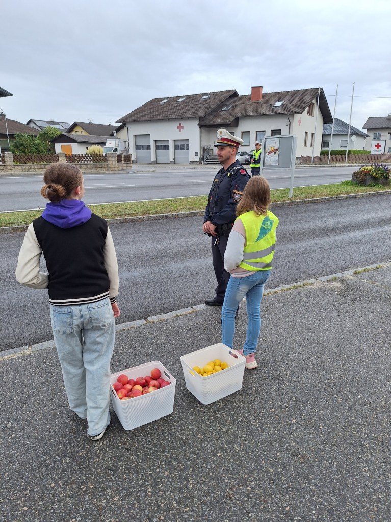 Am 18. September haben die Schüler:innen der 4. Klassen beim Verkehrserziehungsprojekt „Apfel oder Zitrone“ gemeinsam mit der Mobilitätsbeauftragten Daniela Mayerhofer und der Polizei Schrems teilgenommen.