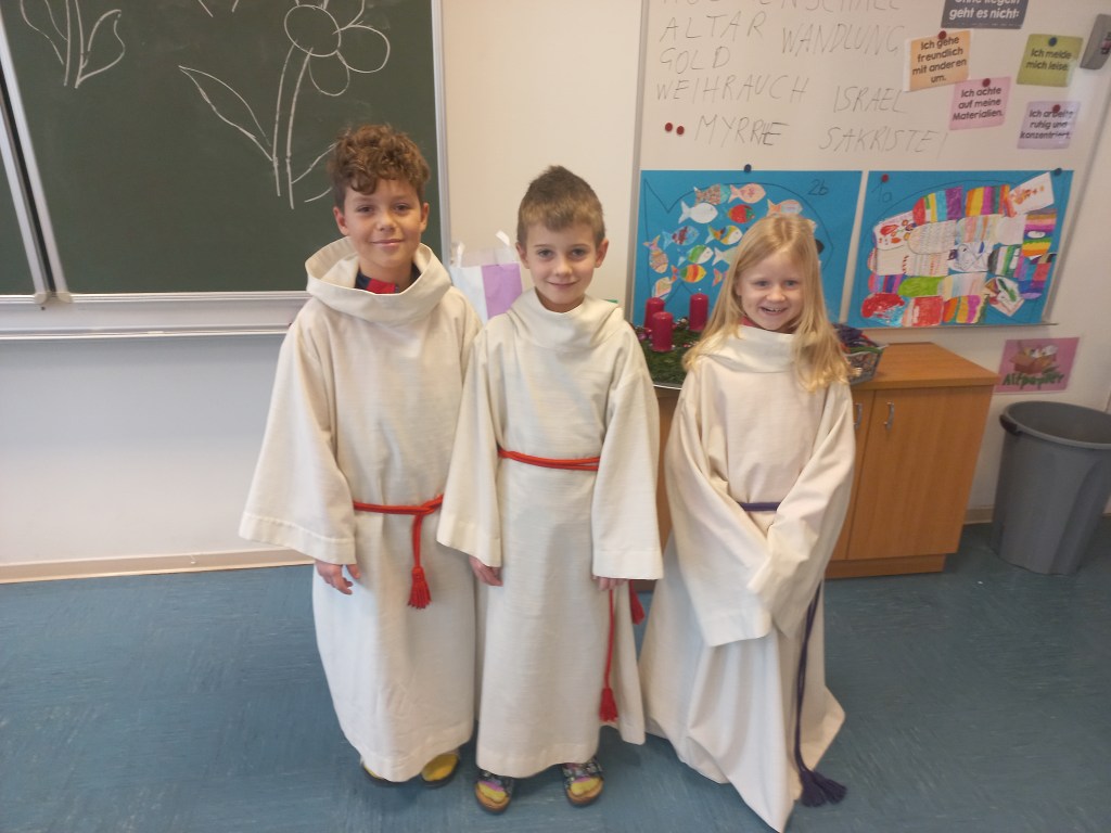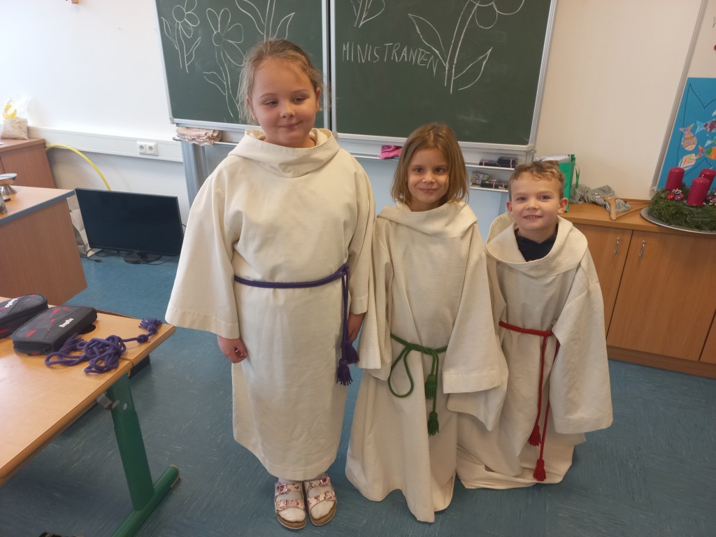 Mit diesen spannenden Fragen beschäftigten sich die Kinder im Religionsunterricht. Unterstützt von Pastoralassistent Franz Sedlmayer durften sie einen besonderen Einblick in die Welt der Ministranten gewinnen.